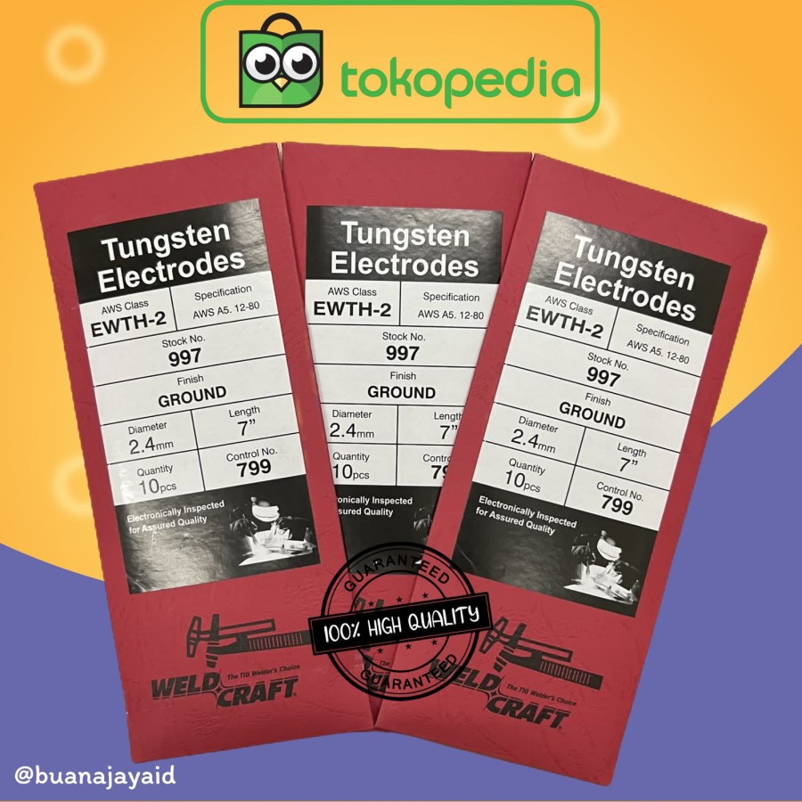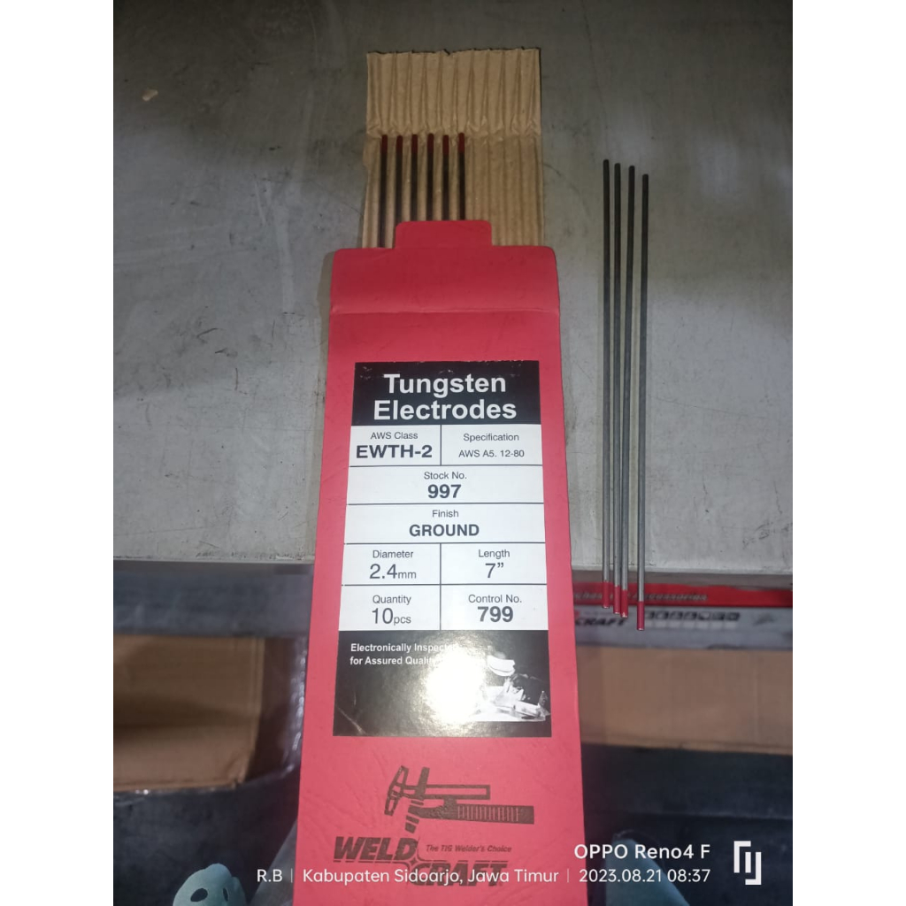 Tungsten Rod Kawat Jarum Las Argon 2.4 mm Merah Untuk Las Besi / Stainless Steel Argon Welding