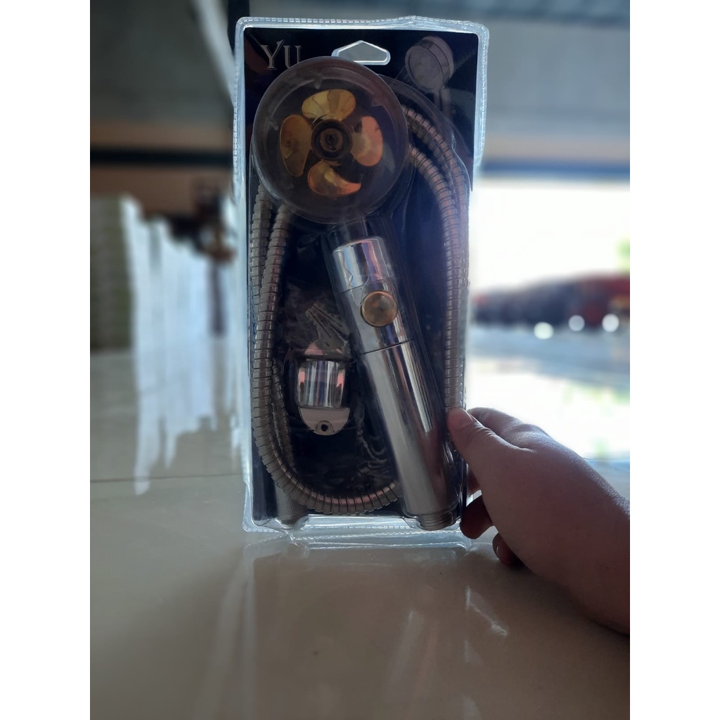 Turbo Fan Shower Head Water Saving High-Pressure Rainfall Propeller fan Jet Shower FULL SET Head 360 Rotation Toilet Bathroom Accessories