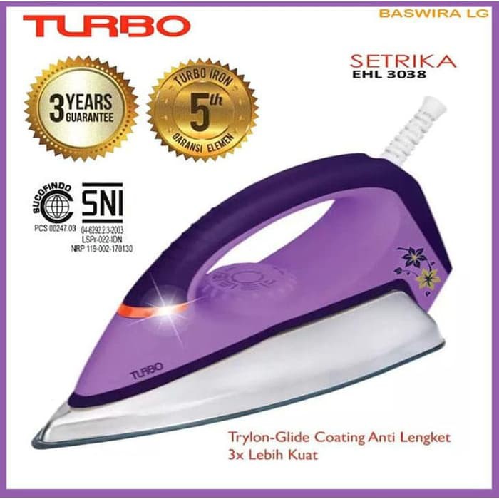 Turbo Setrika EHL3038 Anti Lengket Dry Iron Glide Coating