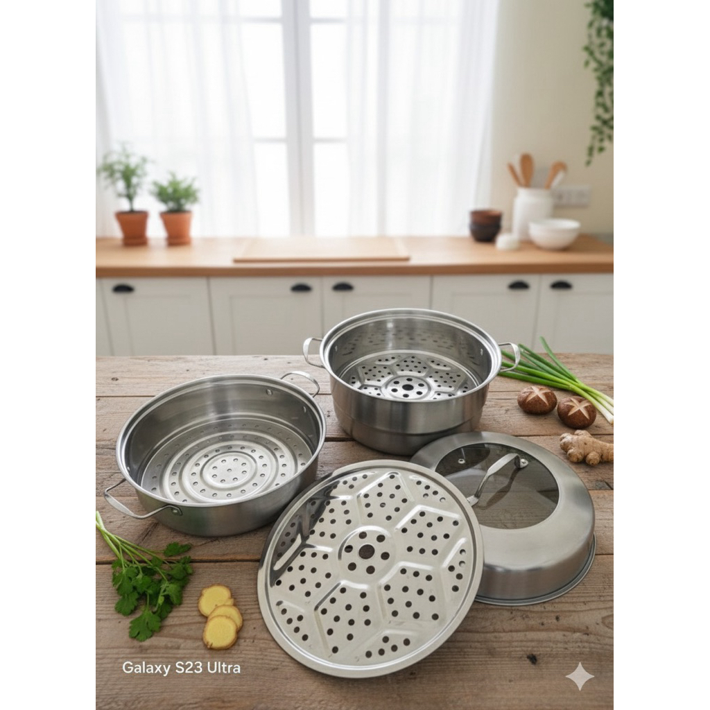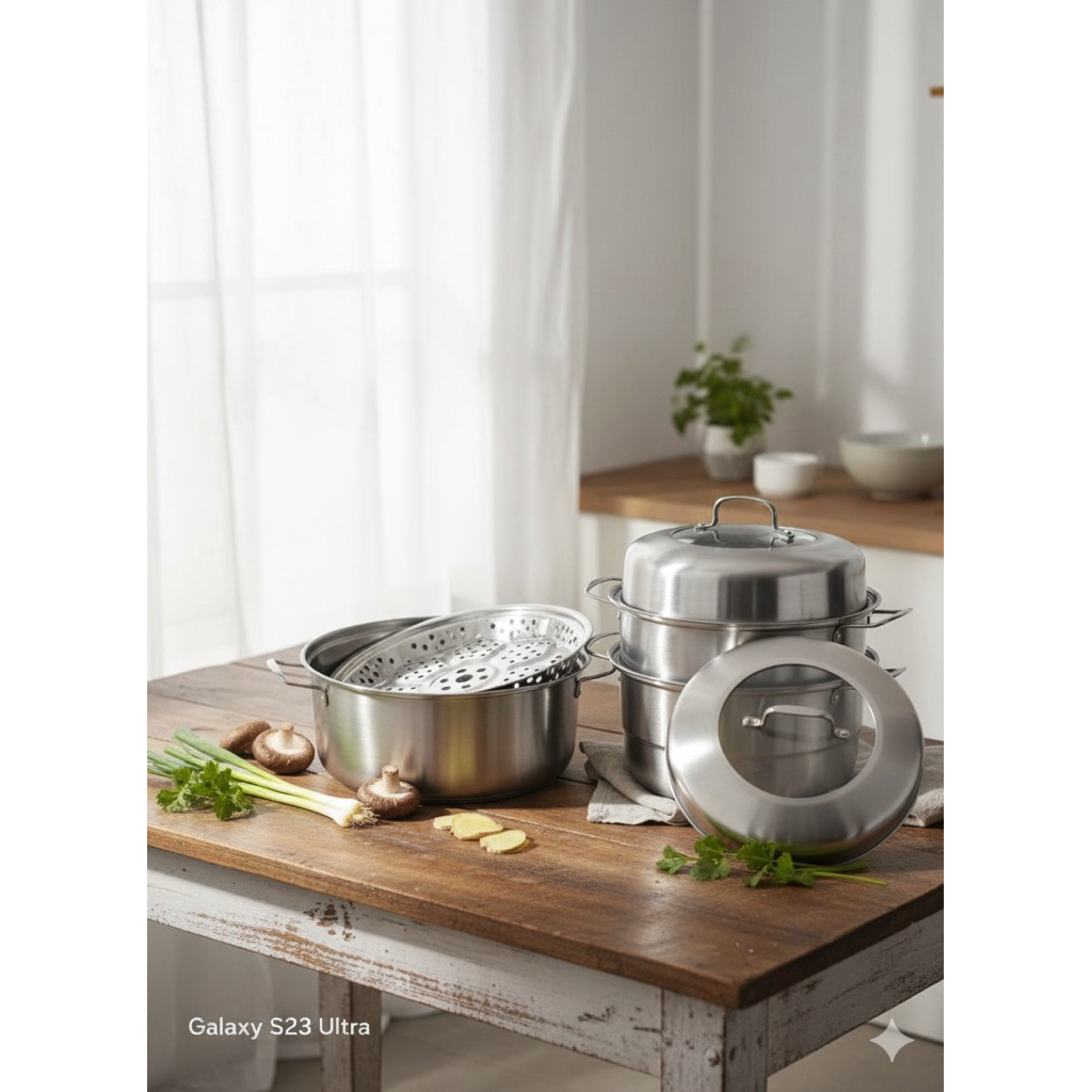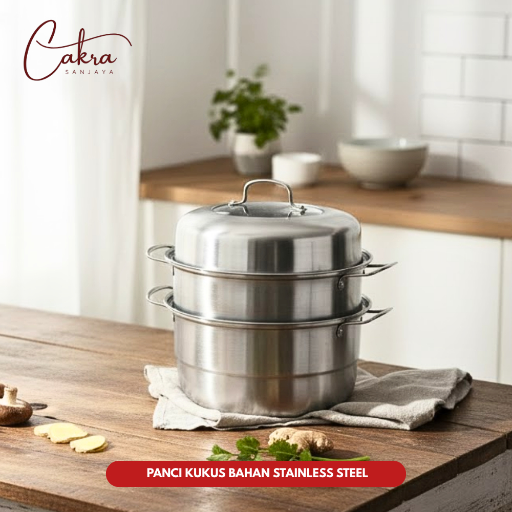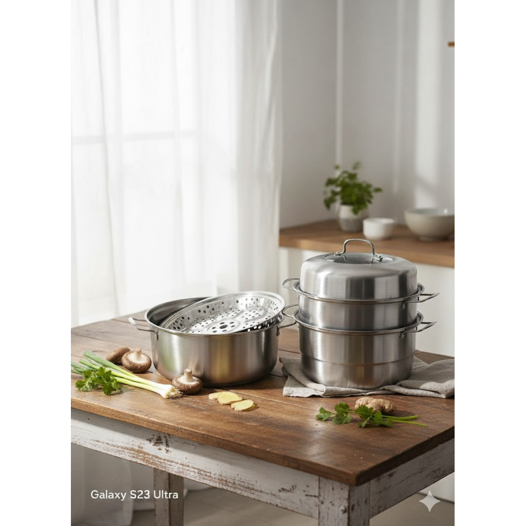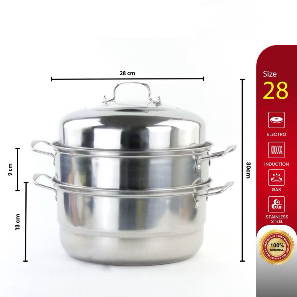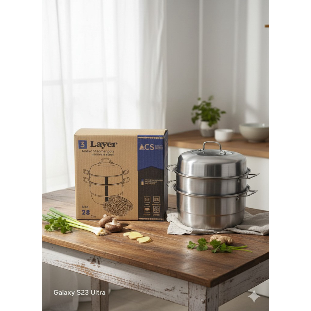 CAKRA Panci Siomay Steamer ALASKA 3 Susun 28CM Kukusan Siomay pangsit Bapao Dandang Stainless Steel
