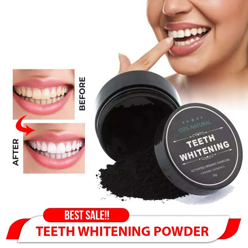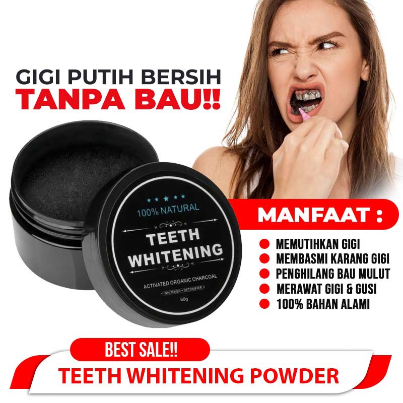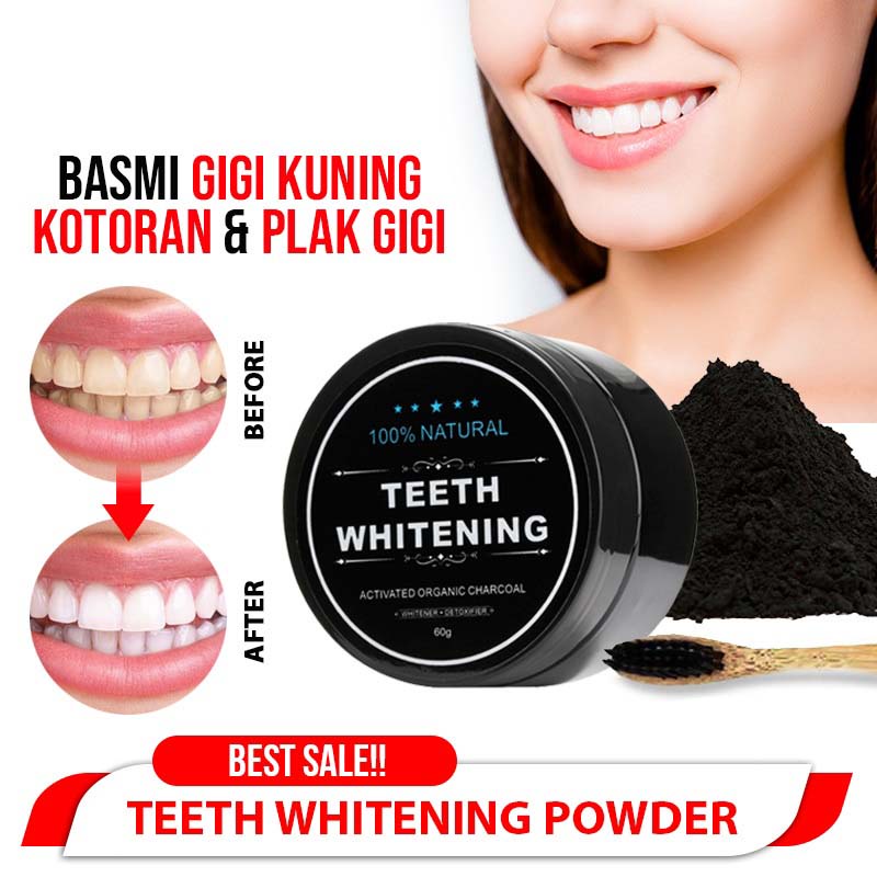 [DENGAN ACTIVATED CHARCOAL | MEMBANTU MEMUTIHKAN GIGI] Pemutih Gigi Kuning Alami Instant Permanen Teeth Whitening Powder