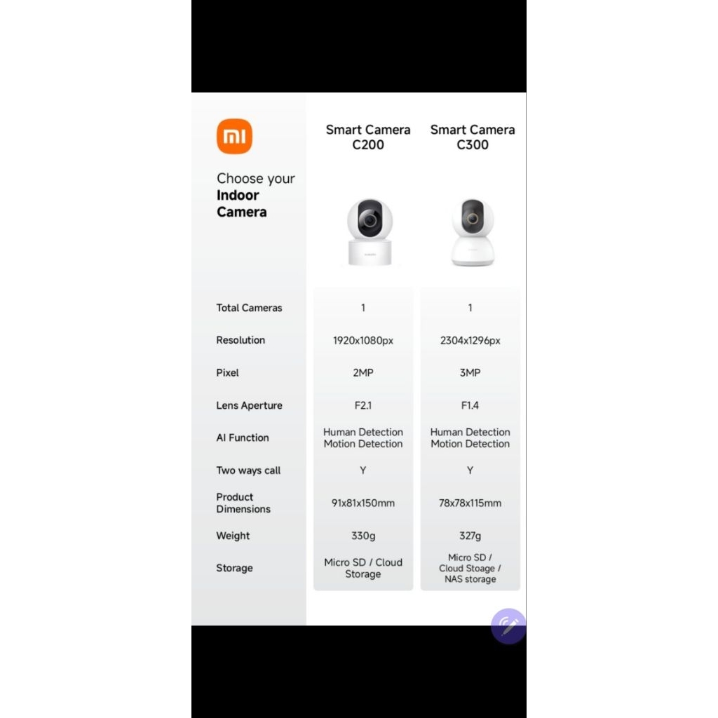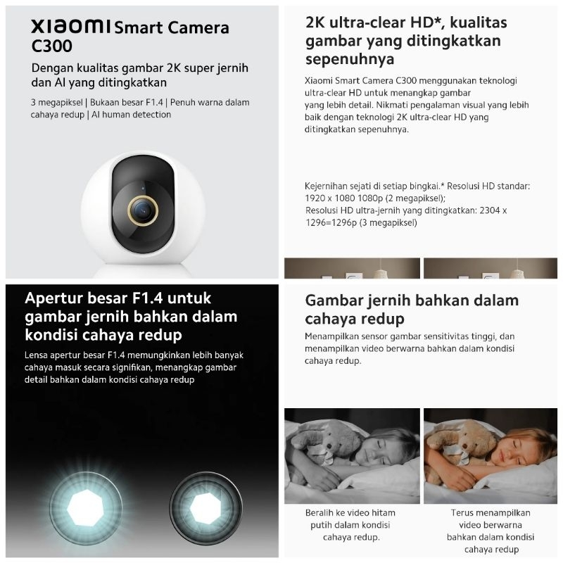Xiaomi Smart Camera CCTV C300 (2K Ultra-clear 3MP) AI Detect/ C200(2MP) Garansi Resmi Xiaomi Indonesia