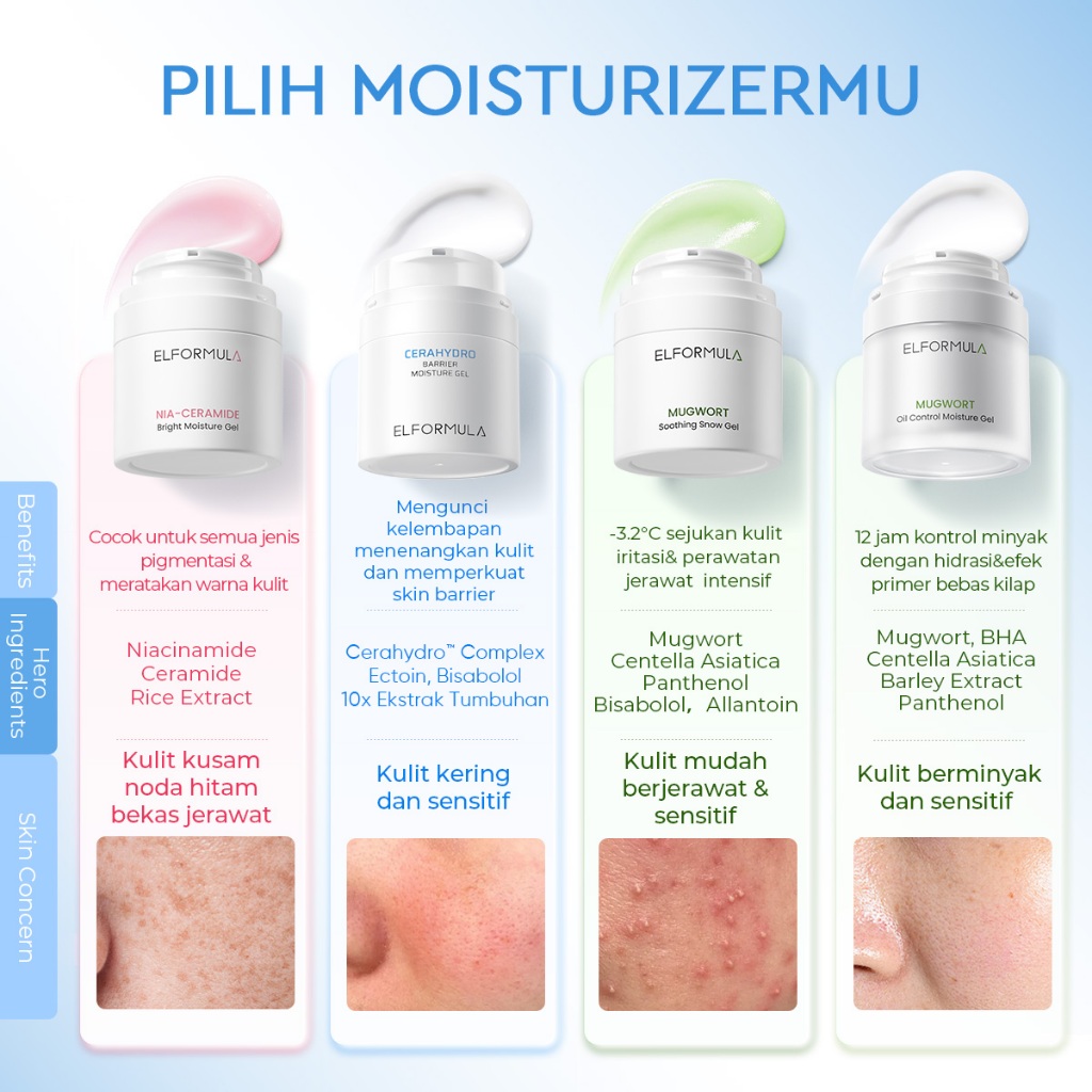ELFORMULA Intensive CeraHydro Barrier Repair Moisture Gel - Moisturizer Calming Pelembab Wajah Pagi Malam Kulit Cerah Skin Barrier Hyaluronic Acid with CeraHydro + Plant Extract & Ceramide Skincare Oil Control Kulit Kering
