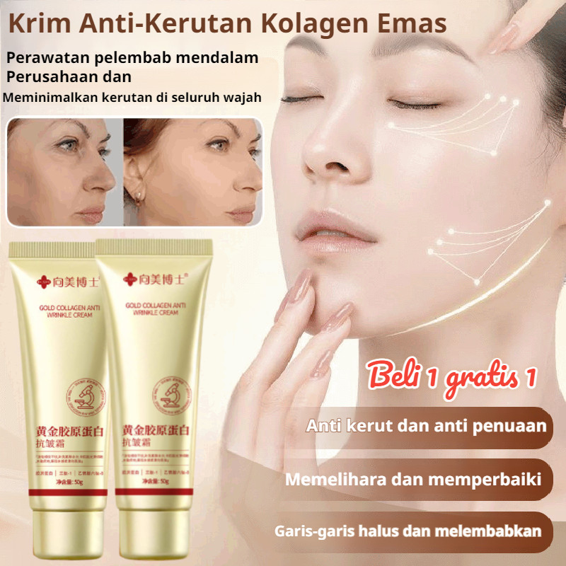 ⭐【Beli 1 Gratis 1/Pengiriman 24 Jam】⭐Krim Anti-Kerutan Kolagen Emas/Anti-Kerut Anti-Penuaan Krim/Gold Collagen Anti-Wrinkle Cream/Pelembab Pemutih Wajah/Krim Kolagen Anti Kerutan