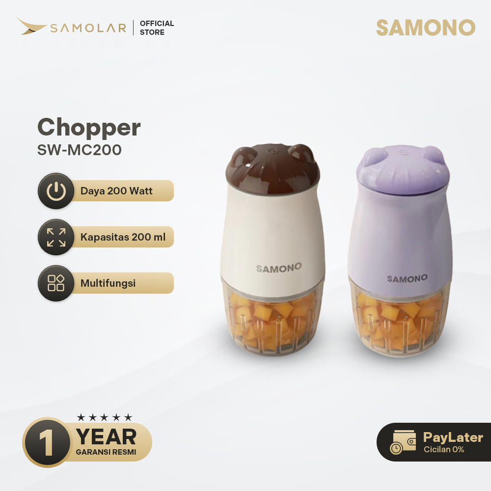 SAMONO Food Chopper Multifungsi 300ml Penghalus Daging dan Bumbu Garansi Resmi 1 Tahun SW-MC200