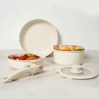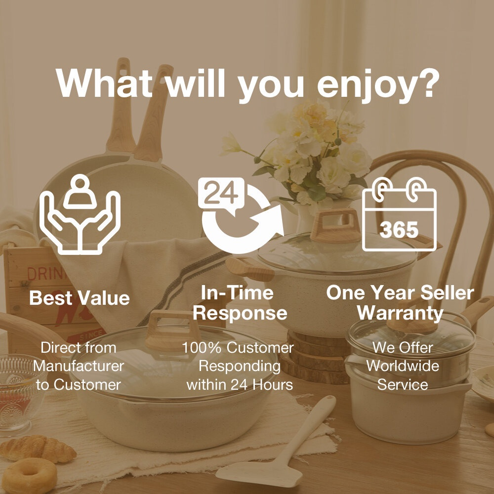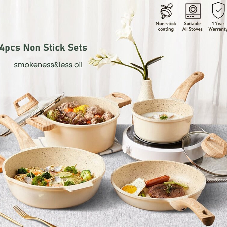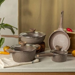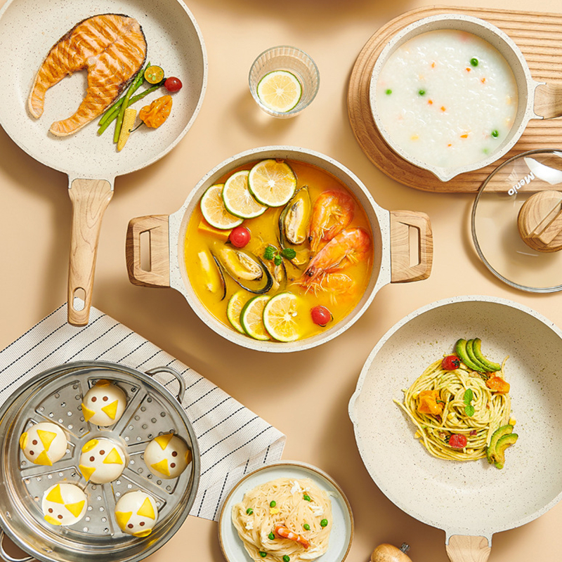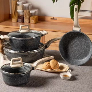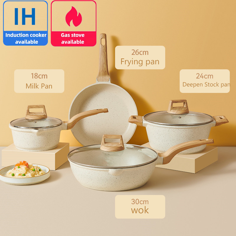 7PCS Granit Putih Antilengket Peralatan Masak Dapur Untuk Semua Kompor Panci Wajan Penggorengan