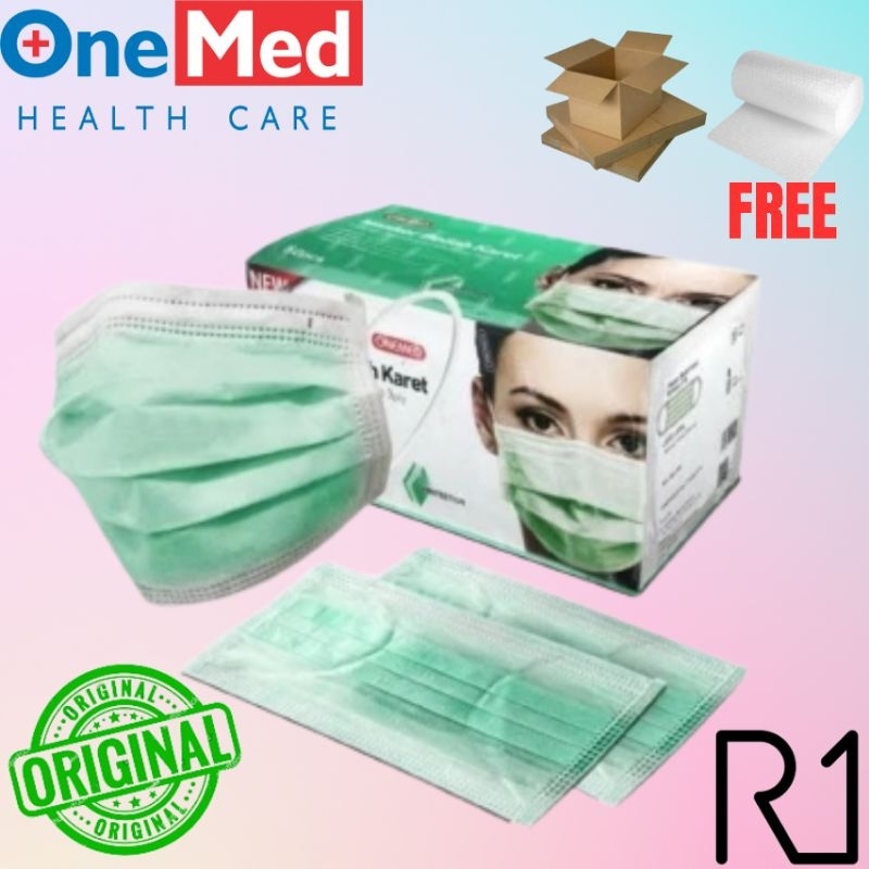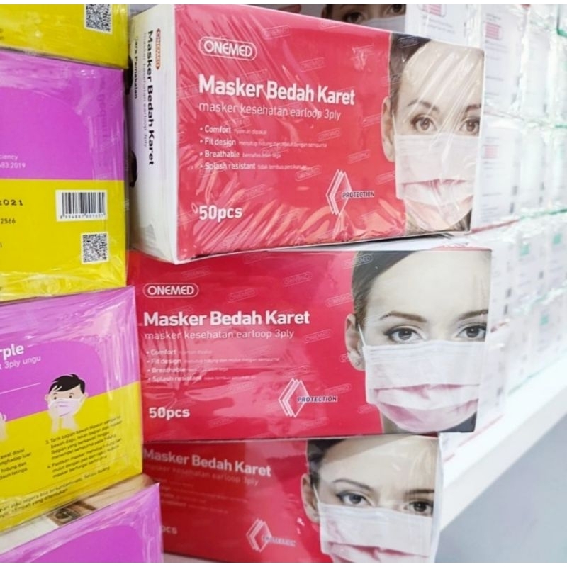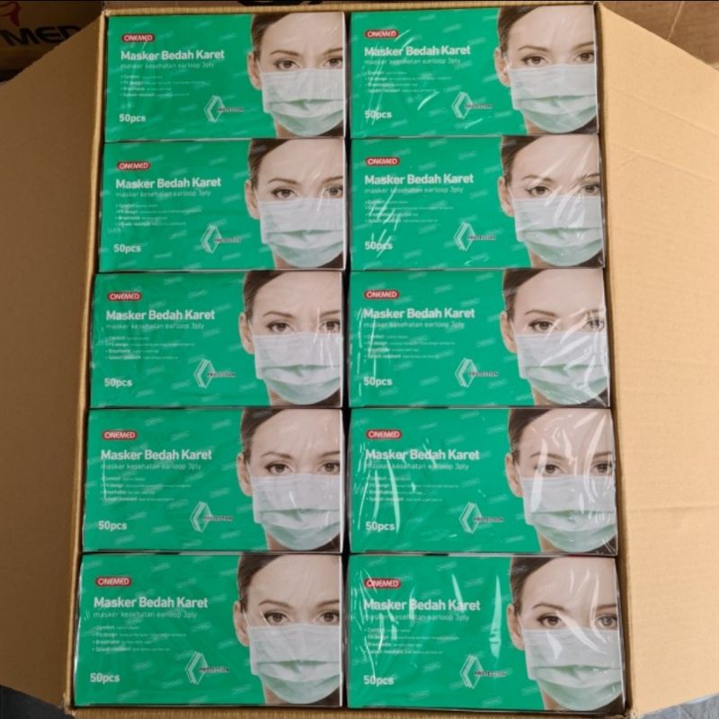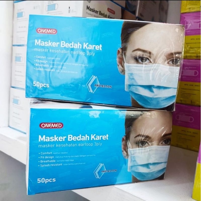 Onemed masker medis masker karet earloop onemed 3 ply isi 50pcs per box