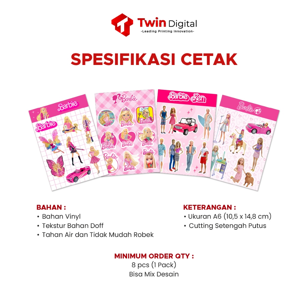 Twindigital Cetak Sticker Sheet Pack Edisi Barbie Label DIY Laptop Deco Anti Air - Stiker Sheet Pack HP