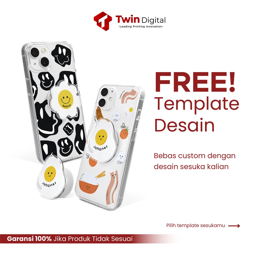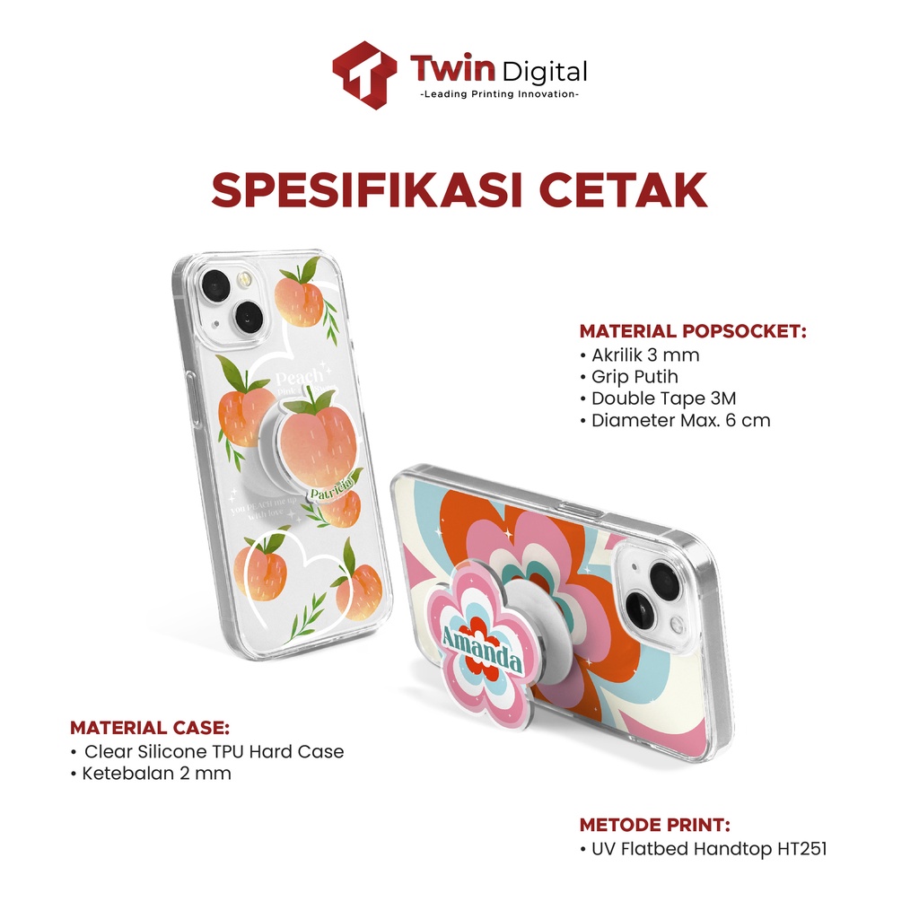 Twindigital Custom Design Case iPhone Bundling Popsocket Print UV - Paket Case Apple Griptok Ring Phone Holder