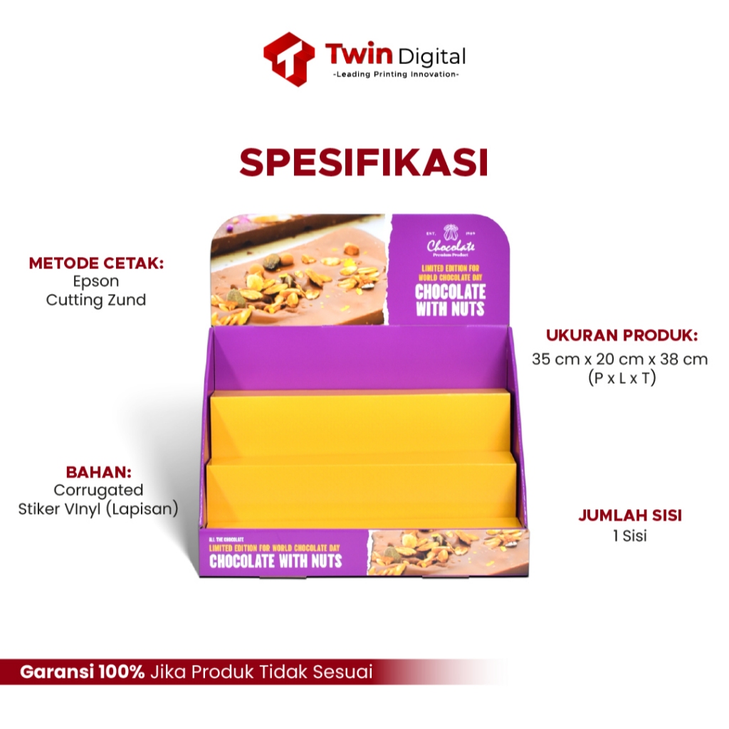 Twindigital Custom POS 3 Tier Display Rack - Cetak Counter Display Corrugated Edisi Chocolate