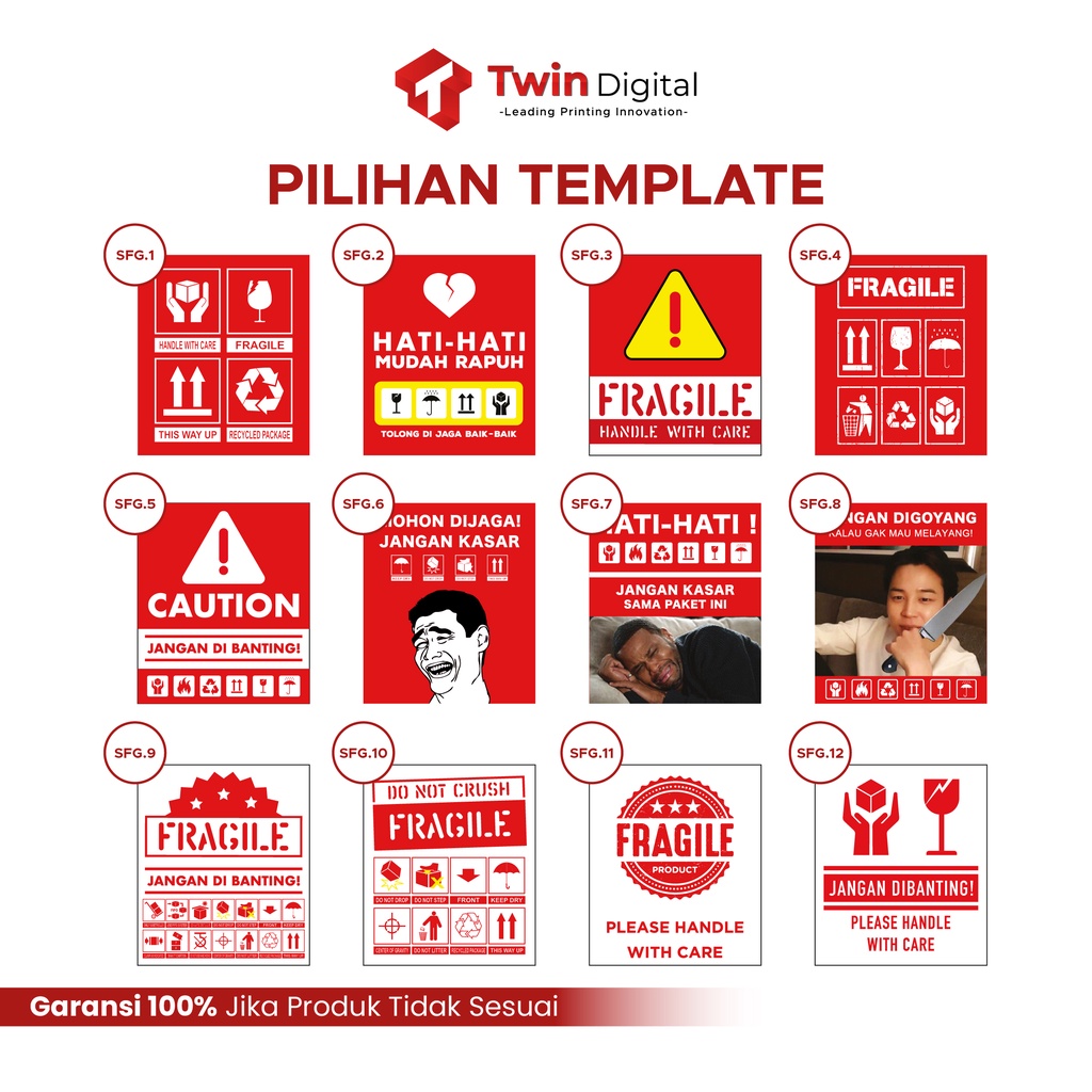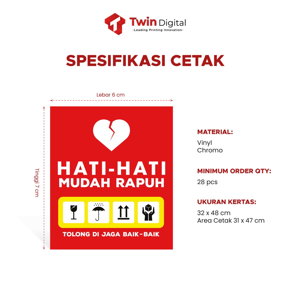 Twindigital Stiker Fragile Cetak Stiker Label Pengiriman Fragile - Stiker Label Fragile