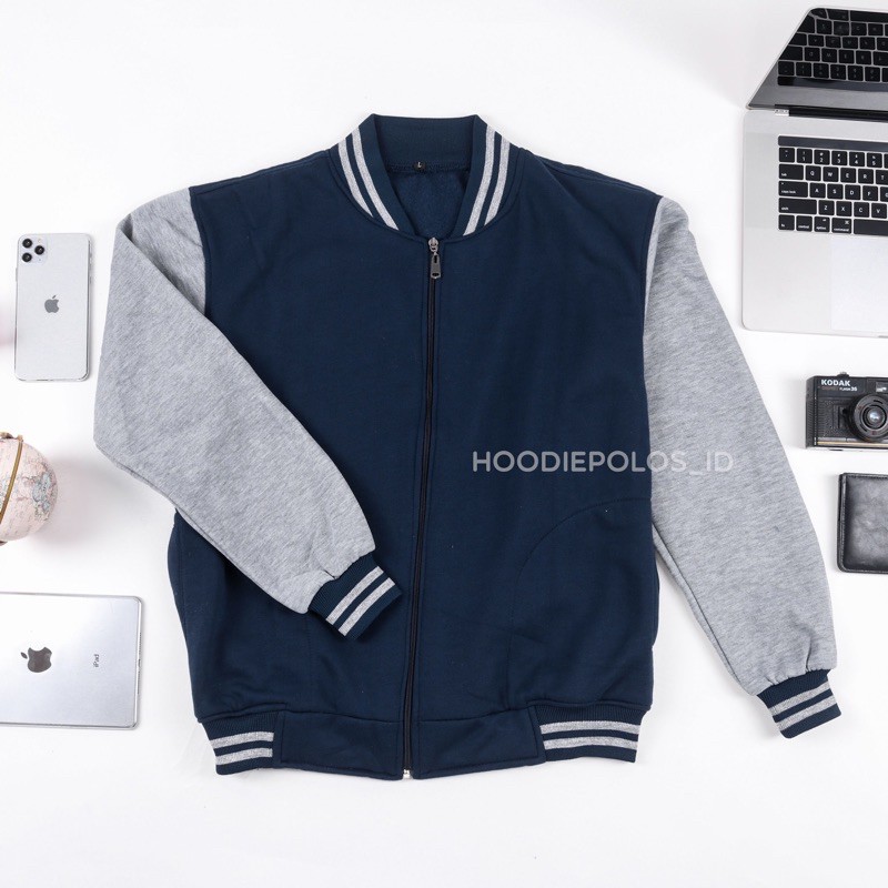 Jaket Baseball Varsity Resleting Polos Navy Abu Size M - XXL