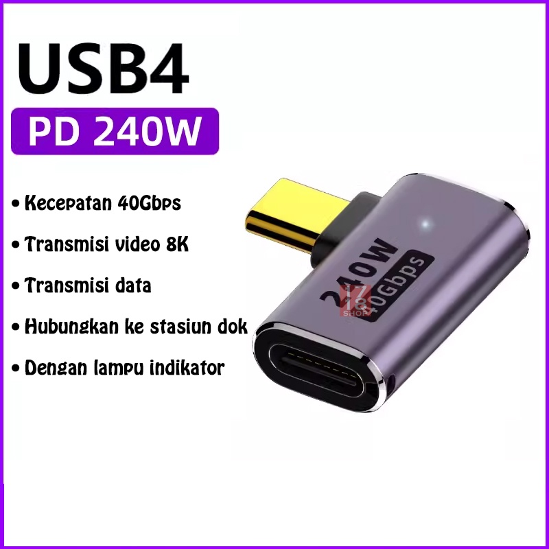 Type-C Adapter 240W 40Gbps 8K 60Hz Audio Video Output Type-C Multi-function Adapter Konverter untuk Ponsel Tablet Macbook Air Laptop Usb C Sudut 90 Derajat Adaptor USB-C Extender Sudut Kanan Pengisian Cepat