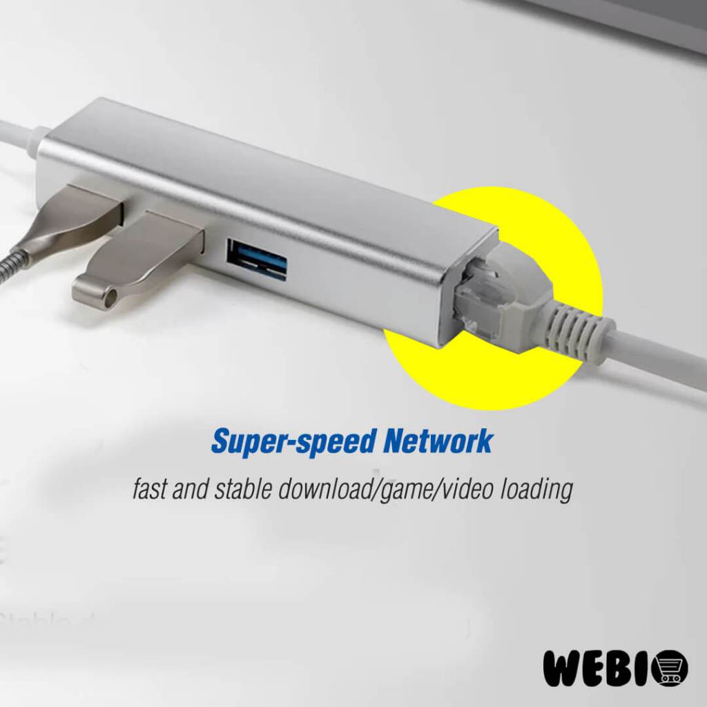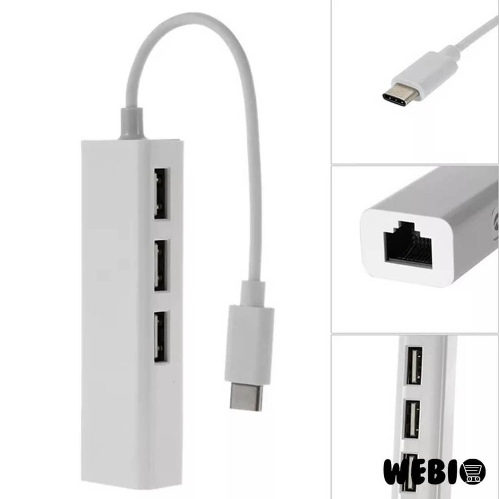 Type C Ethernet Adapter to RJ45 LAN with USB Hub 3 Port Converter Converter Type-C ke LAN Eternet