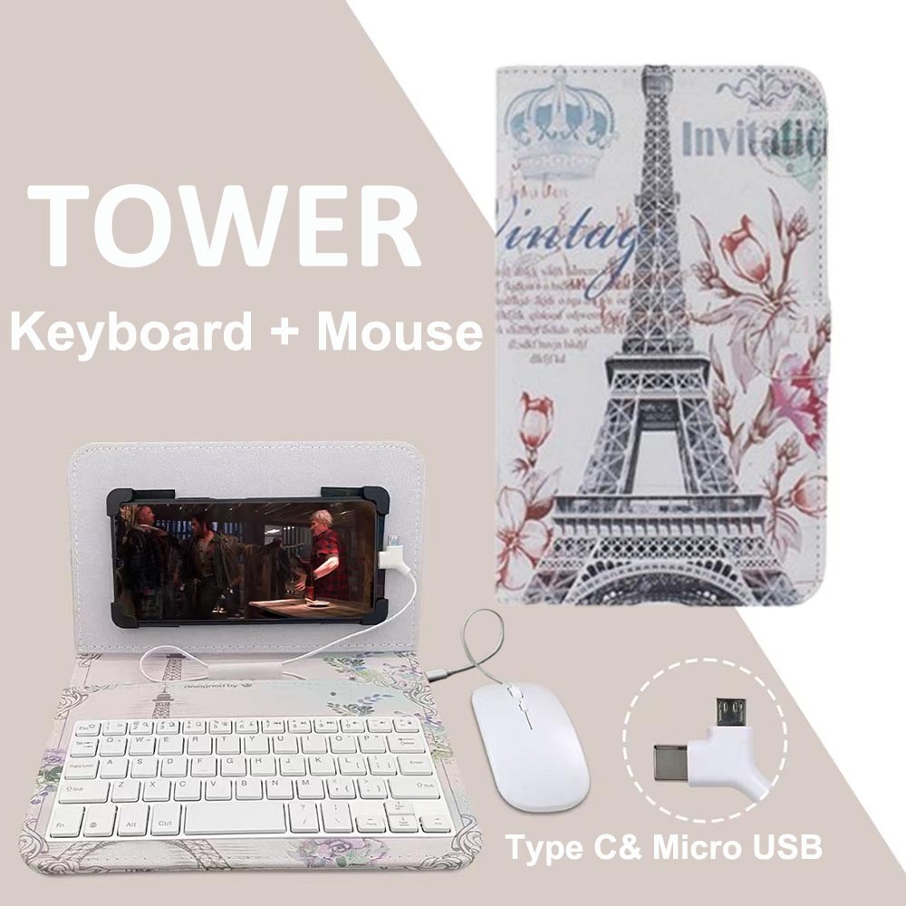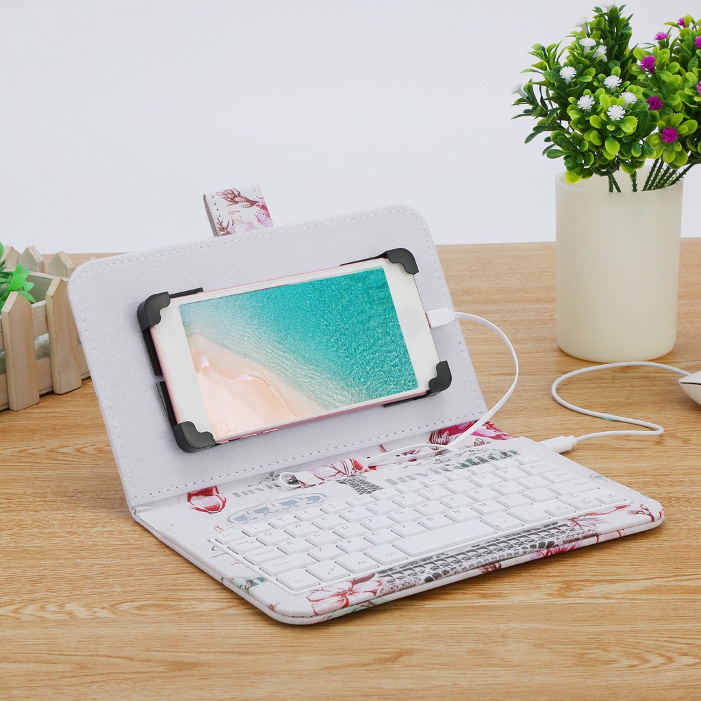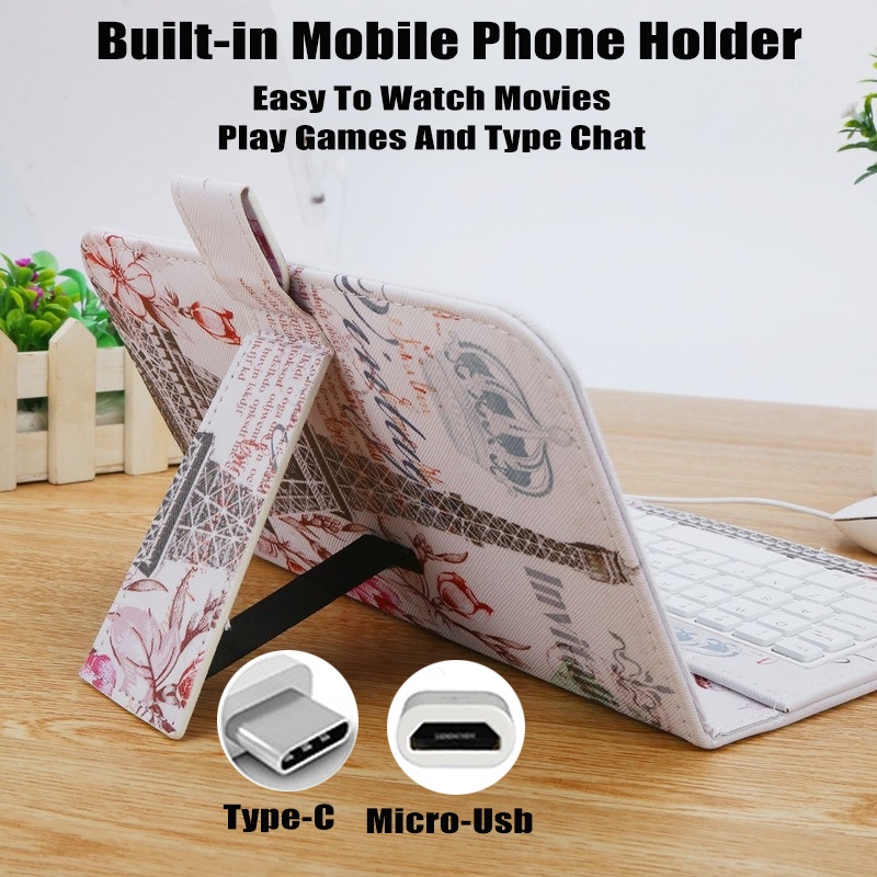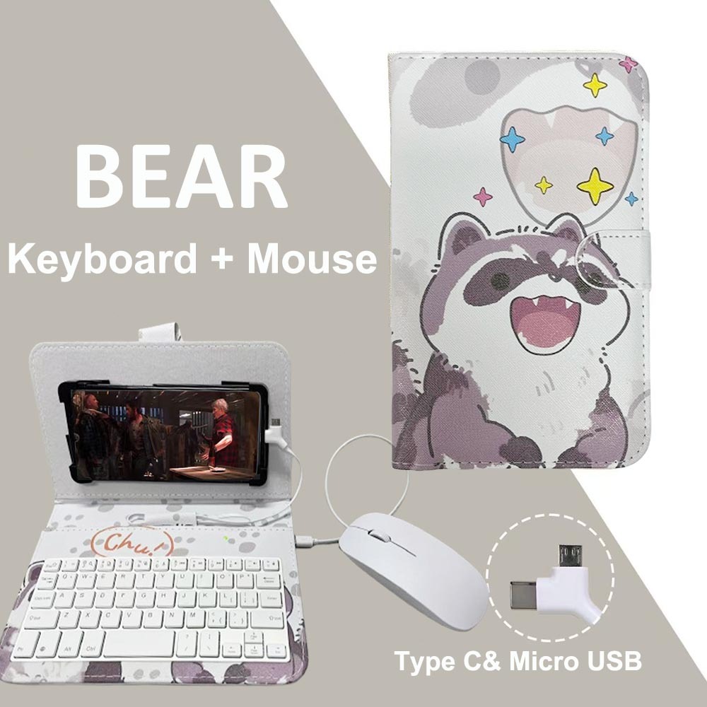 Type-C/Micro-Usb Telepon Kabel Keyboard Mouse Set Dengan Penutup Kulit PU Untuk Ponsel Android Keyboard Dan Mouse Dengan Fungsi OTG Untuk Pembelajaran Kelas Online Rumah Kantor