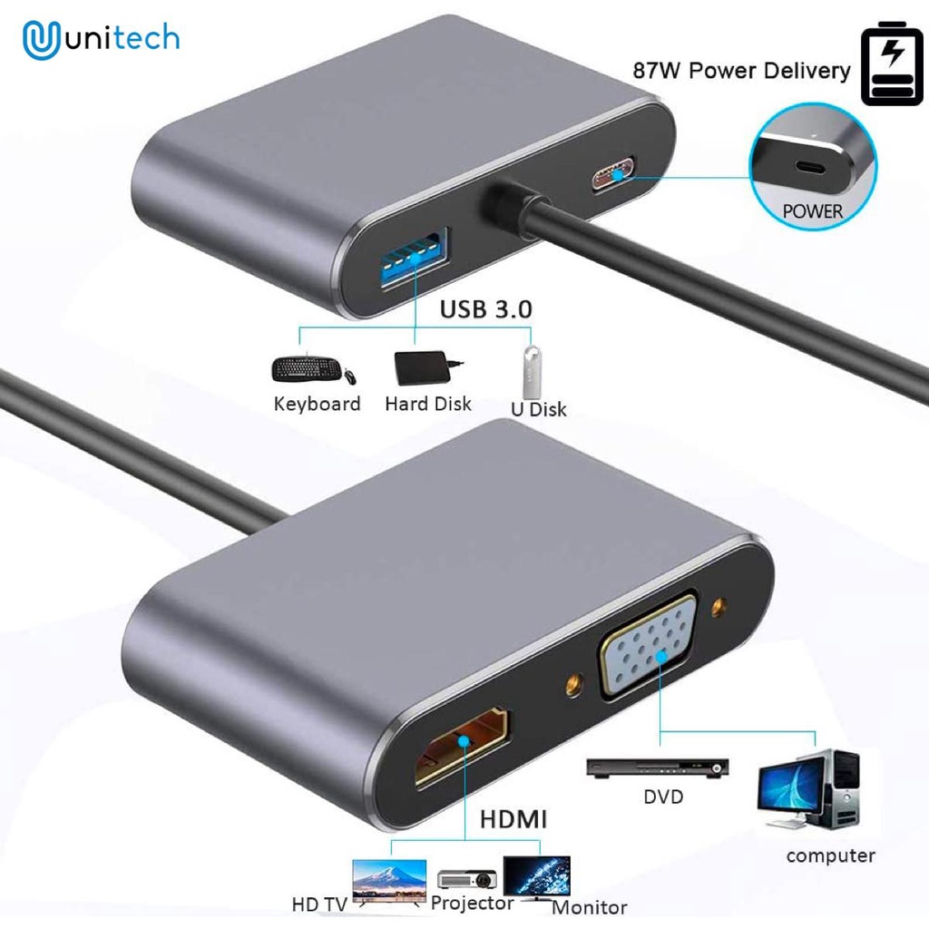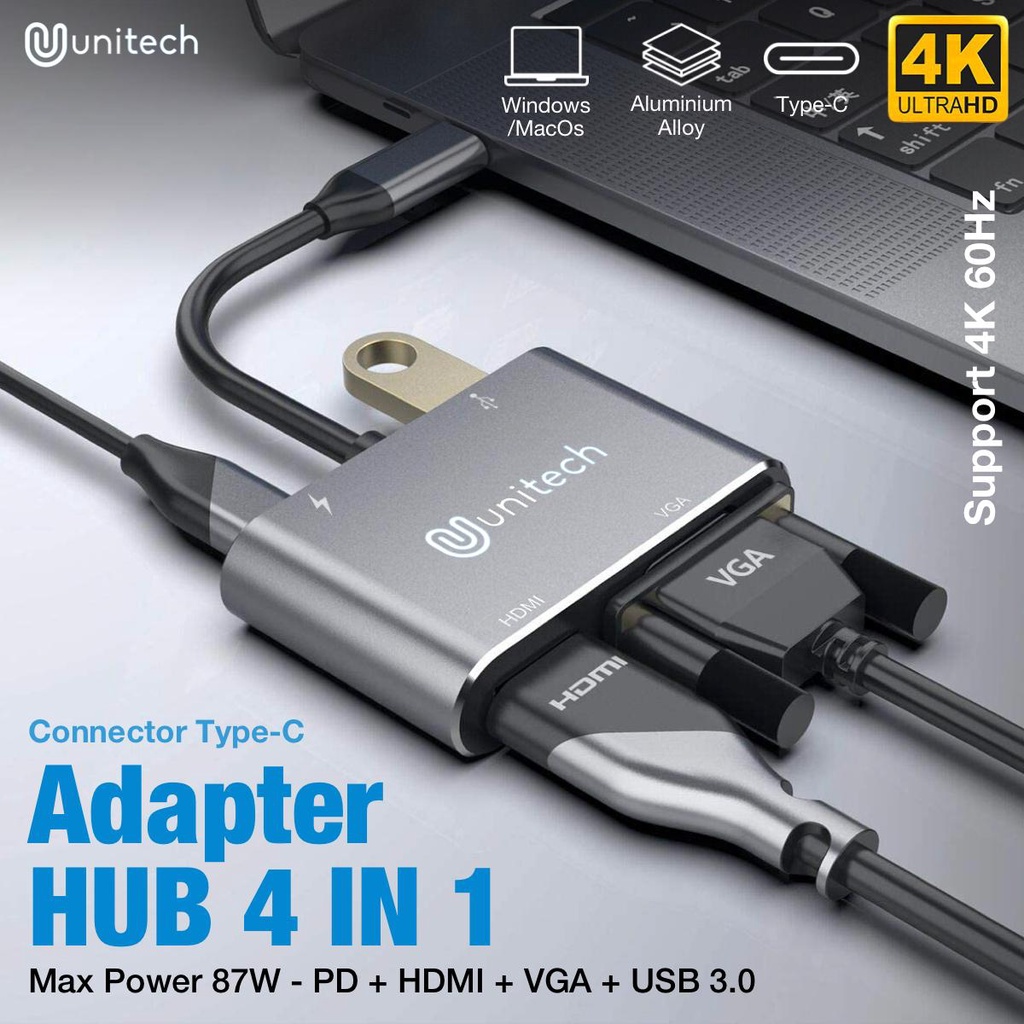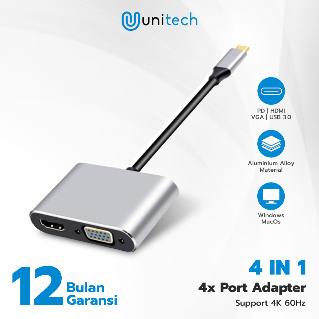 TypeC Converter 4in1 Unitech Adaptor Support 4K HDMI+VGA+USB+PD