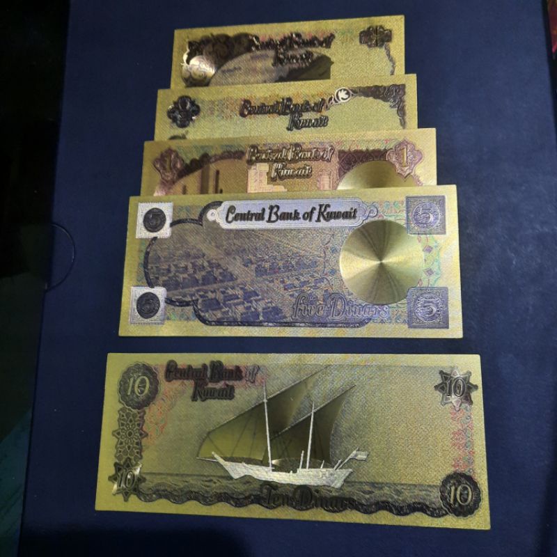 UANG KUWAIT SET 1968 DINAR KUWAIT LAMA GOLDFOIL 5 Pcs FOR COLLECTION