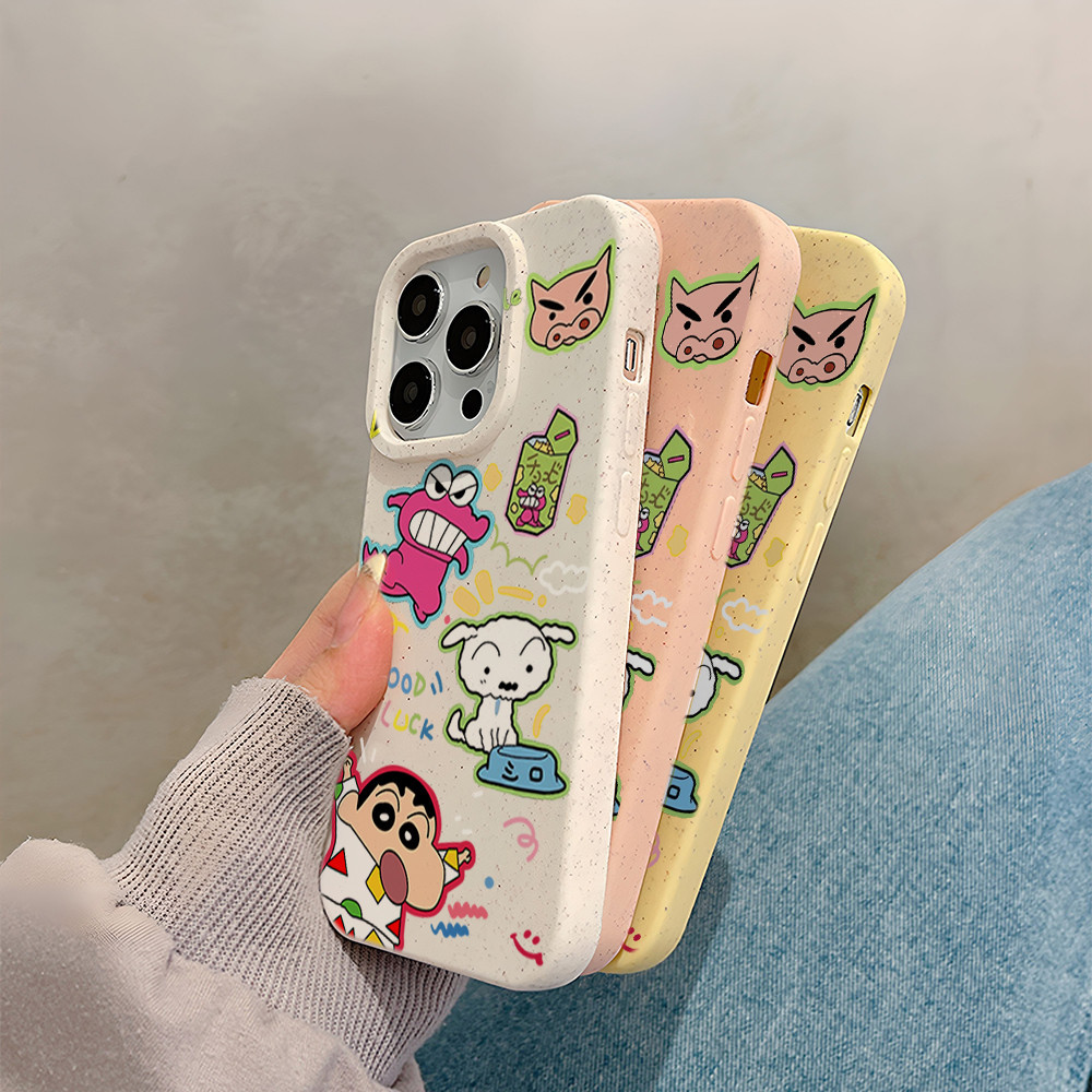 UCASE Case iPhone 7 8 6 6S Plus 11 13 12 Case 14 15 Pro MAX XR XS MAX 7Plus 8Plus SE 2024 iPhone Crayon Shinchan playing Casing Silikon Wheat Phone Case