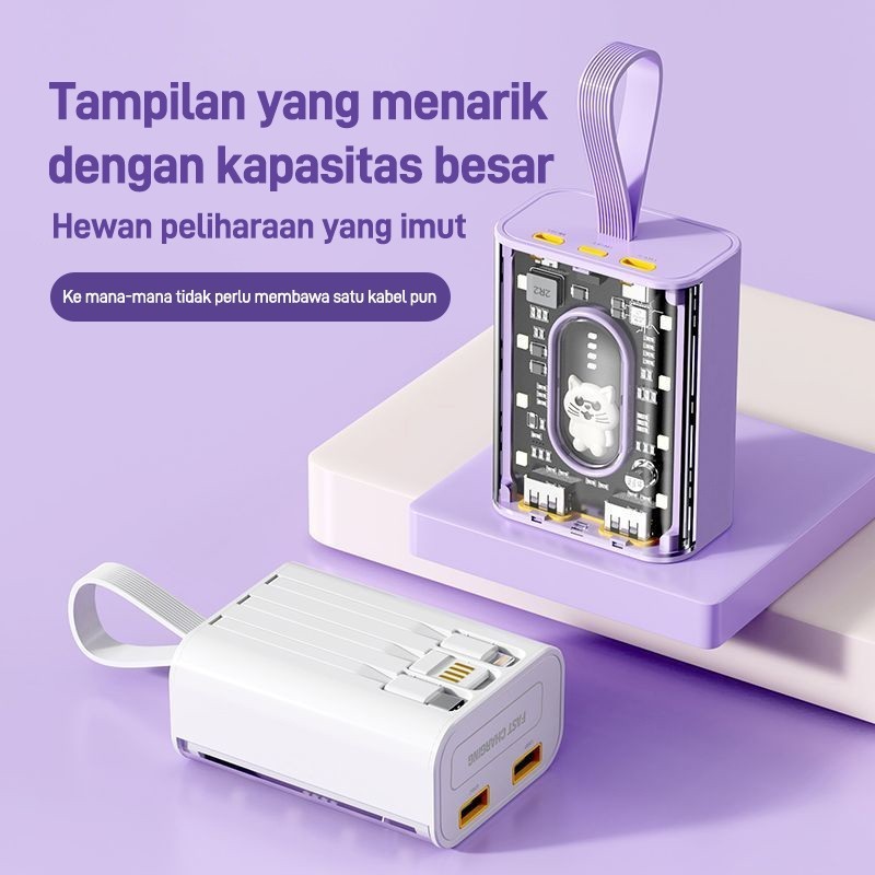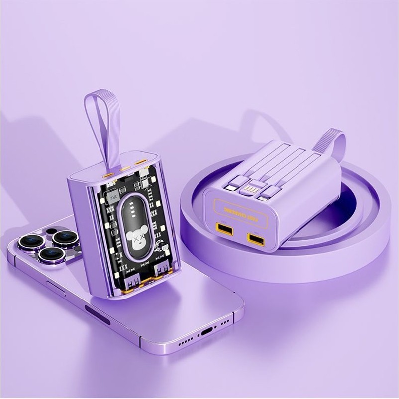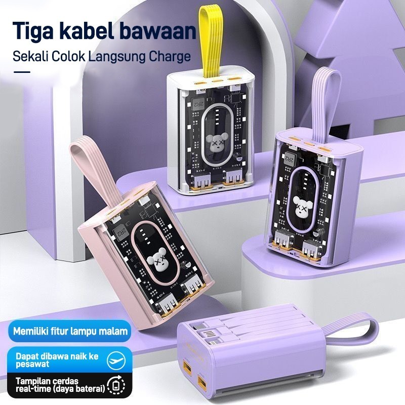 UCASE Power bank 25000mAh mini yang nyaman, power bank transparan berkapasitas besar, power bank 3 IN 1 25000mAh dengan tampilan lampu boneka kartun gaya punk, dilengkapi dengan pengisian cepat USB tiga kabel