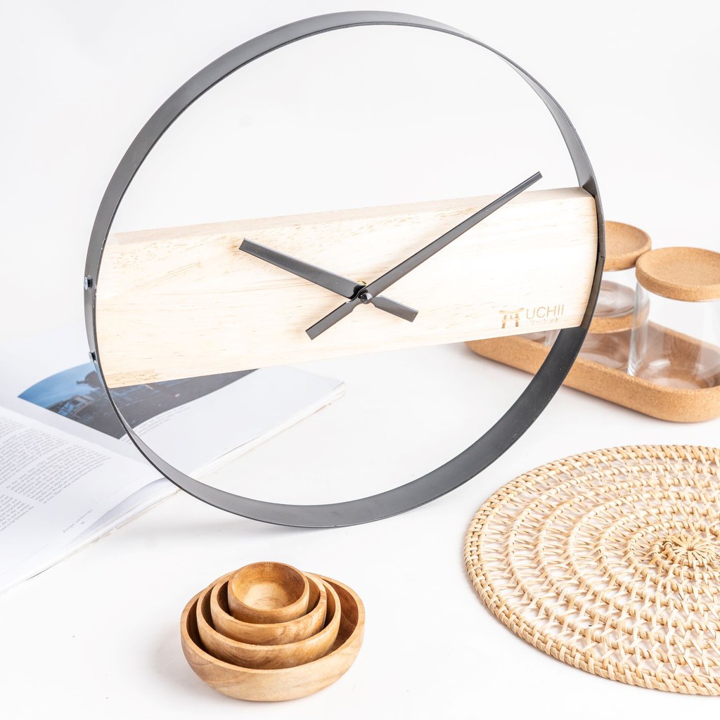 UCHII Exclusive Wall Clock Wooden Steel | Jam Dinding Analog Minimalis