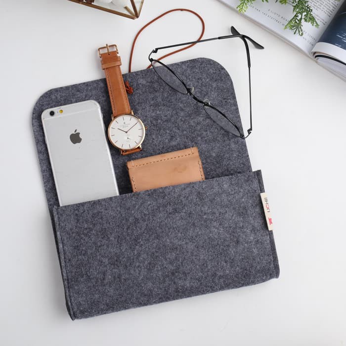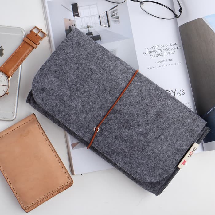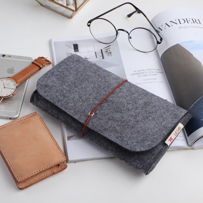 UCHII Travel Felt Pouch Case Rubber Bond Dompet Kain Serbaguna Make Up