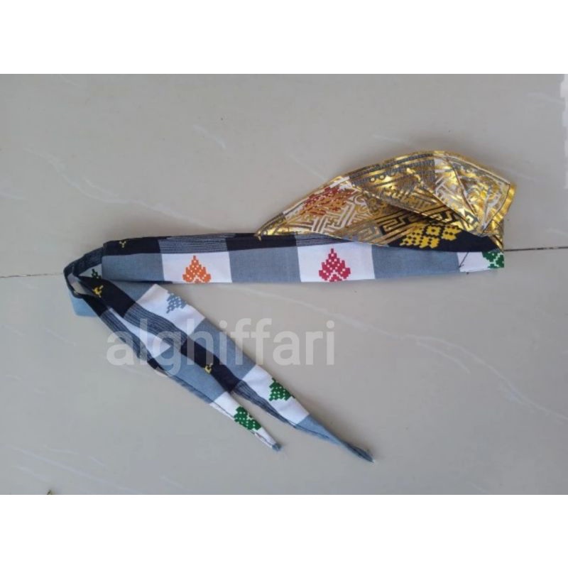 UDENG BALI / IKAT SETENGAH JADI MOTIF KOTAK - KOTAK SOUVENIR HIASAN KEPALA BALI
