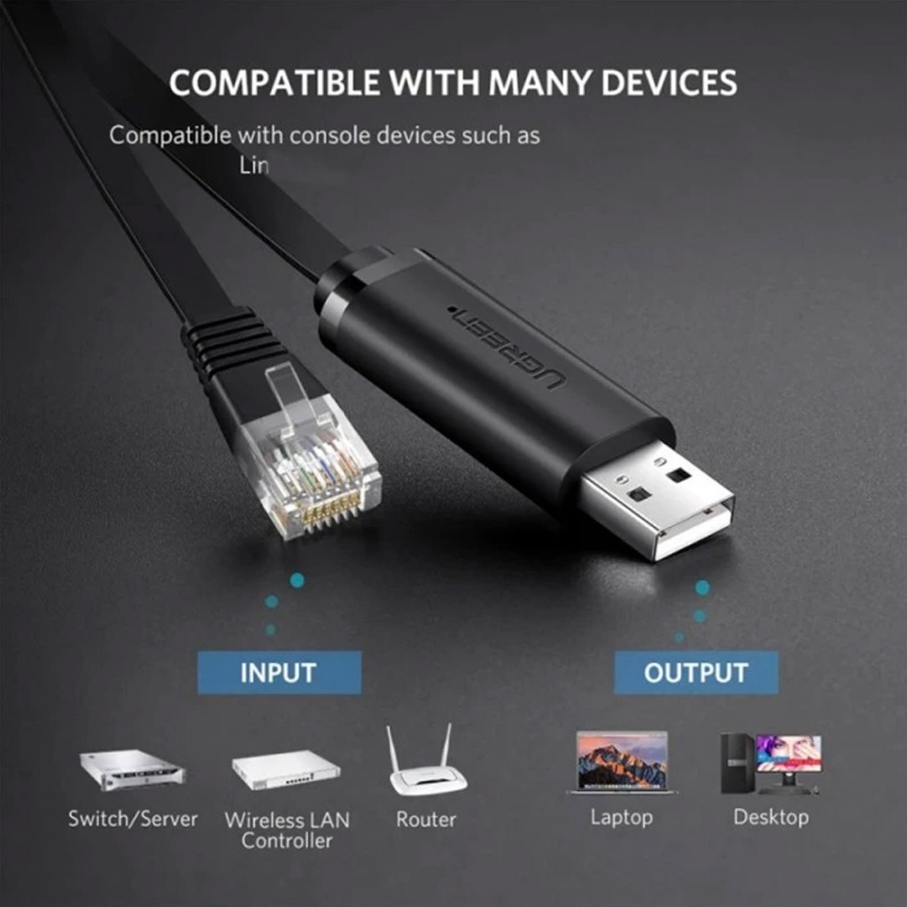 UGREEN 50773 Kabel Converter USB A to LAN RJ45 1.5M FLAT BLACK Cable Console Ethernet UTP Konsol