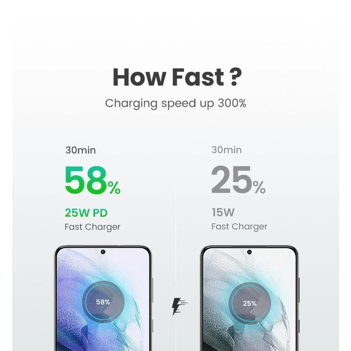 UGREEN 65012 Charger Set Type C Super Fast Charging 30 Watt GaN-N Series With Kabel Type C to Type C 1 Meter PD PPS SFC Black Hitam