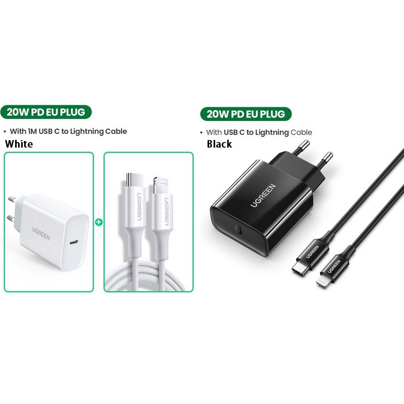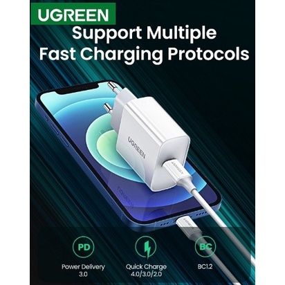 UGREEN Adapter Charger Type-C PD 20W Fast Data Charging Paket Kabel Type C to iPhone