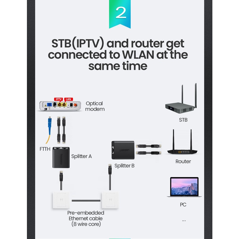 UGREEN Adapter Connector Sambungan LAN RJ45 Splitter Adaptor 1 To 2 Port Ethernet Internet Network