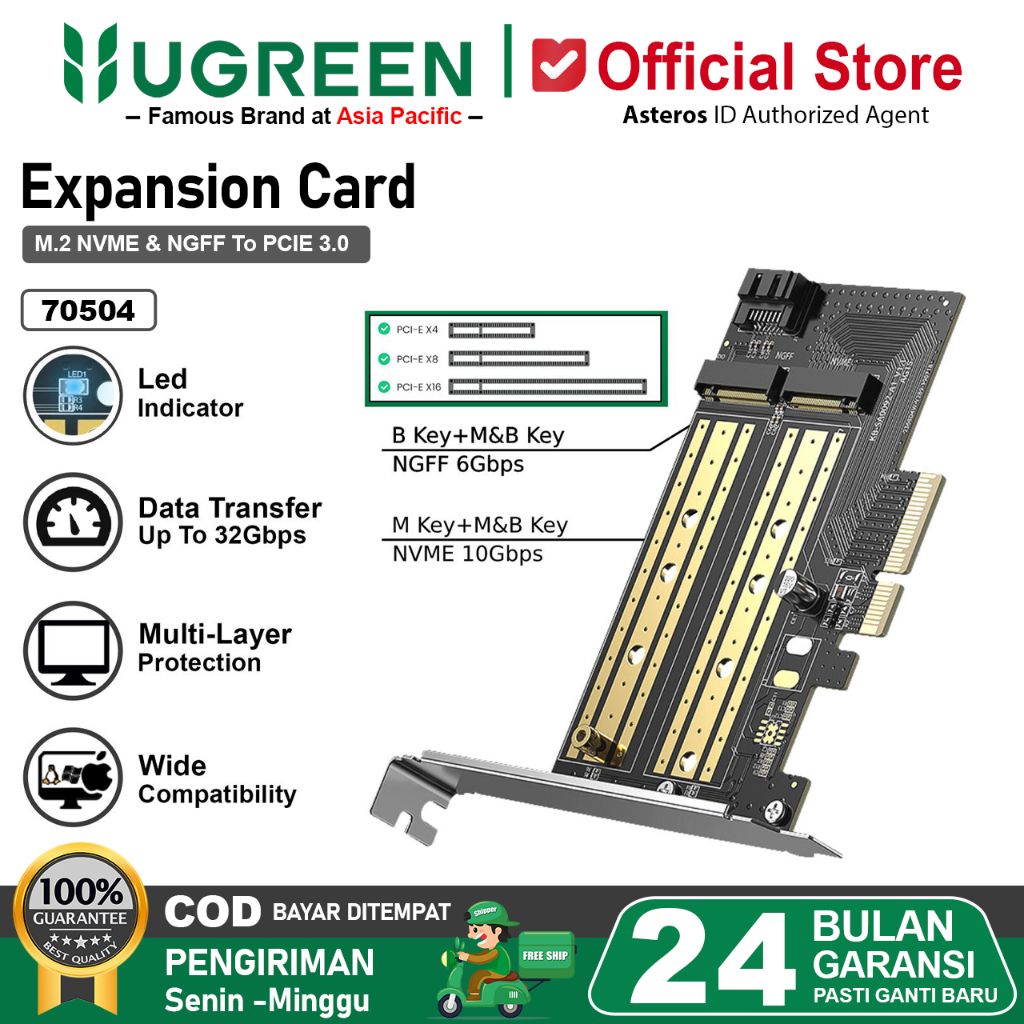 UGREEN Adapter Pcie Ke M2 Nvme Pci Express 32gbps Pci-E X4/X8/X16 SSD