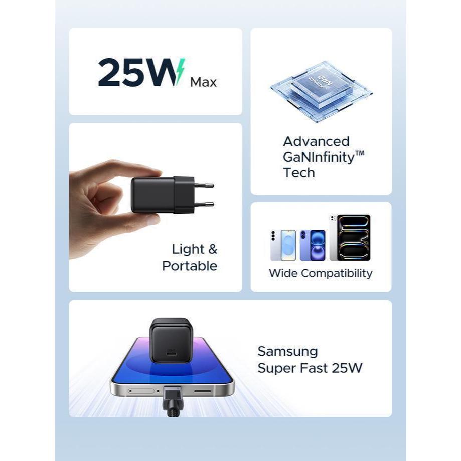 UGREEN CHARGER N SERIES GAN USB C 25W + KABEL C TO C BLACK - 75103
