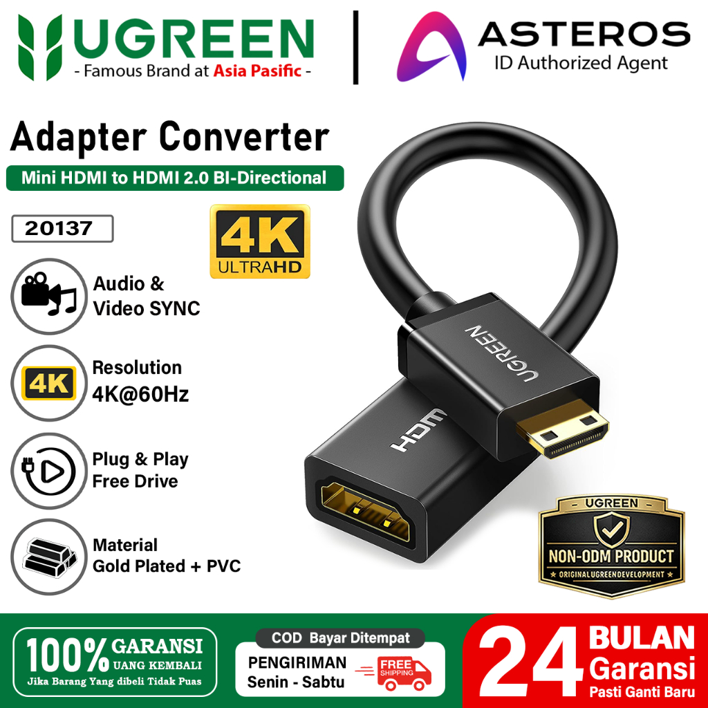 UGREEN Kabel Converter Mini HDMi to HDMi Female 1080p Adapter Mini Hdmi