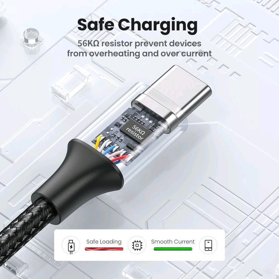UGREEN Kabel Data Charger USB TYPE C 1M 3A 18W Fast Charging QC Braided Nylon - 60126