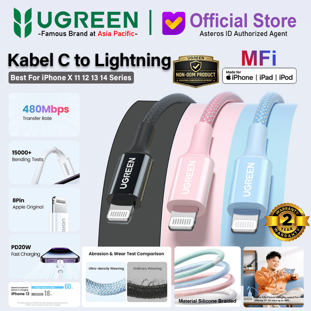 UGREEN Kabel Data Lightning iPhone MFi Silicone Braided Fast Charging