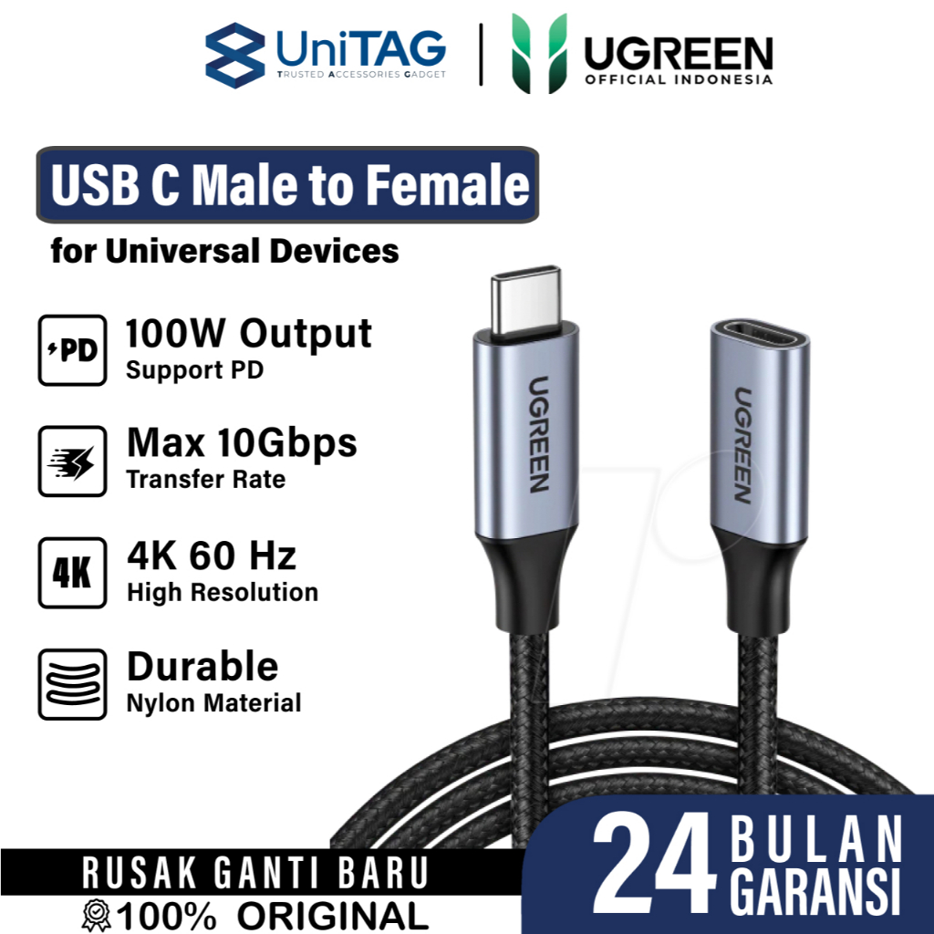 UGREEN Kabel Extension Type C To Type C Male to Female Fast Charging Cable Up 10Gbps by UniTAG