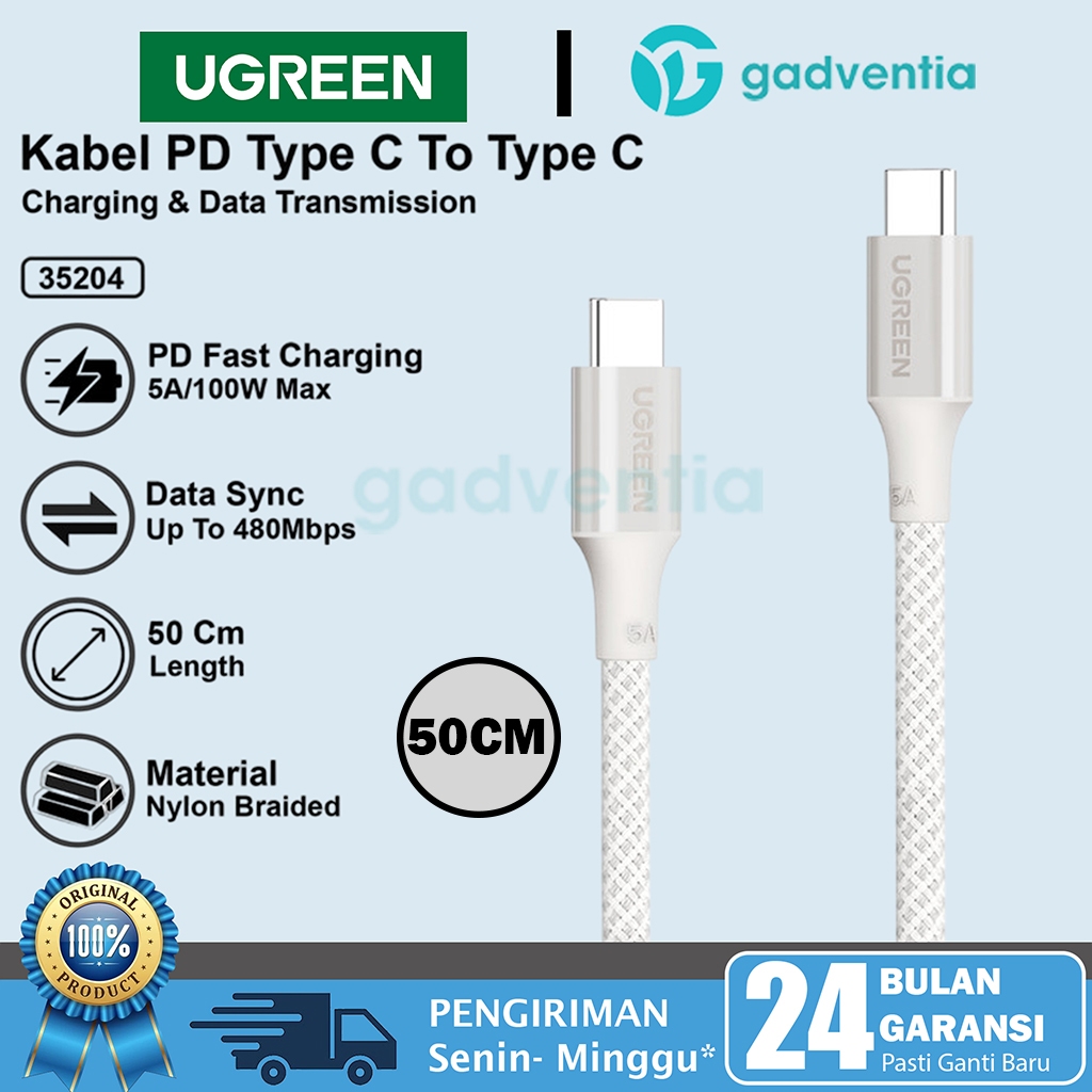 UGREEN Kabel Powerbank Charger Type C to C / Usb To Type C Cable Kabel Power bank Usb C Pendek Fast Charging 18W 100W 5A untuk Samsung S22 S23 Ultra Z A54 Fold Zlip Realme Vivo