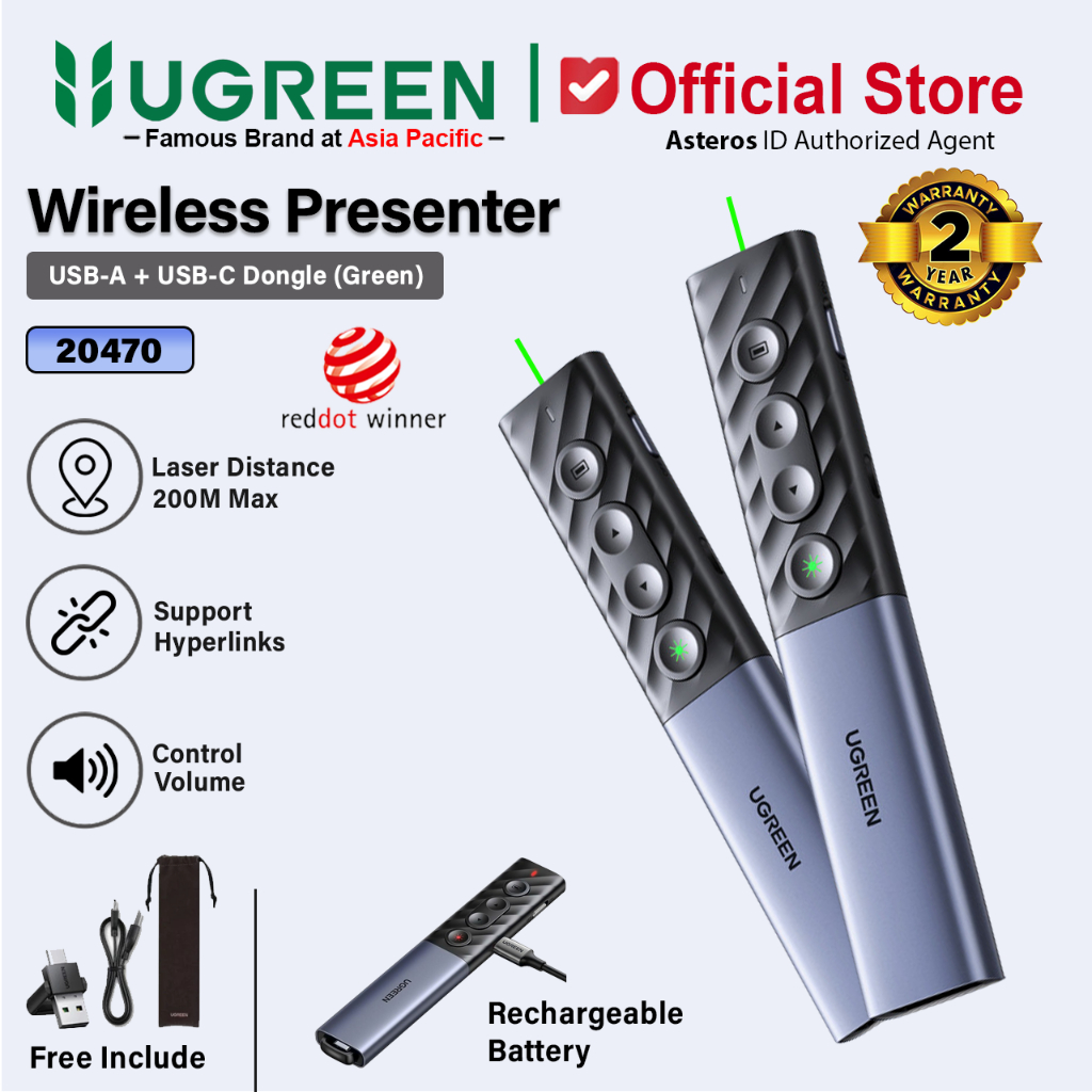 UGREEN Laser Pointer Remote Control Presenter Wireless 2.4ghz For Mac, Windows, Linux