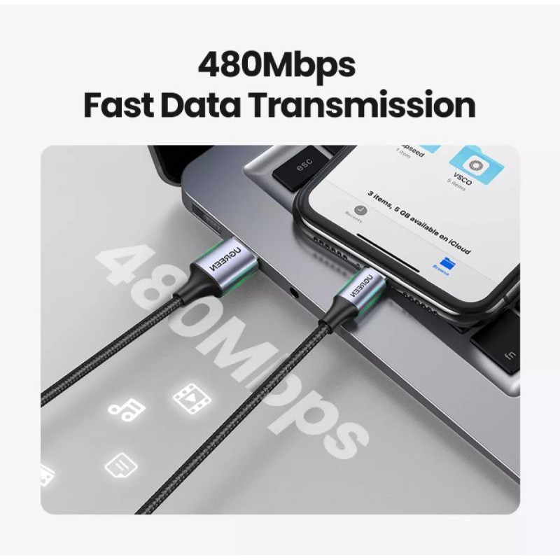 UGREEN MFI USB A to Lightning Nylon Braided Cable For iphone 6 7 8 X XR 11 12 SE ipad