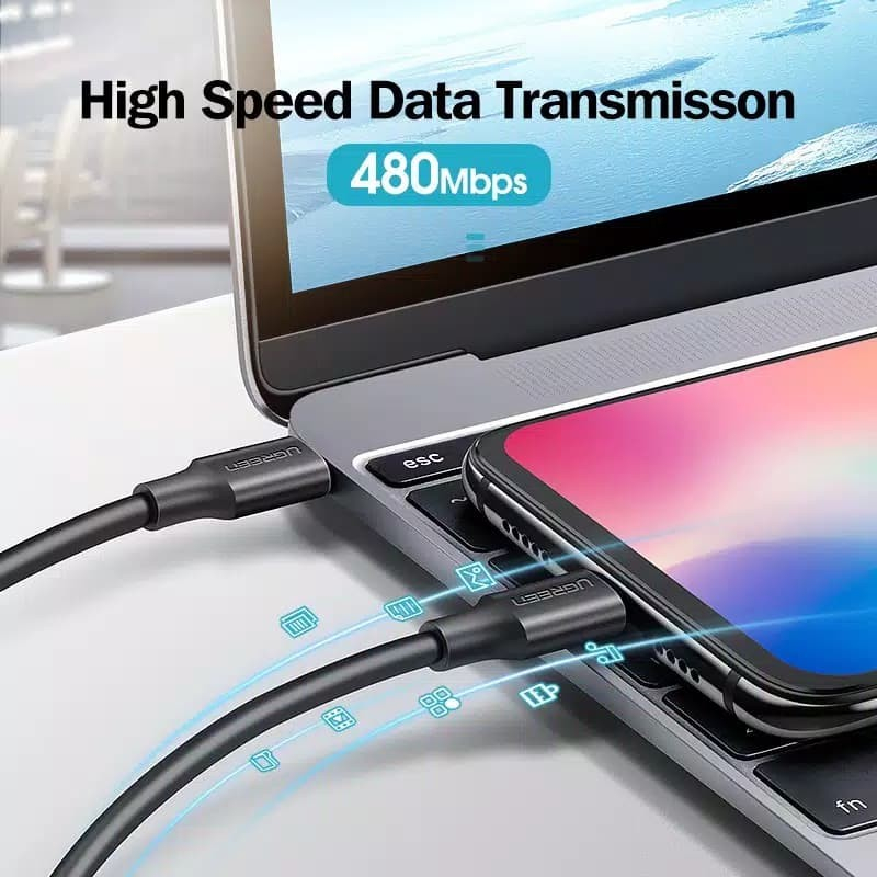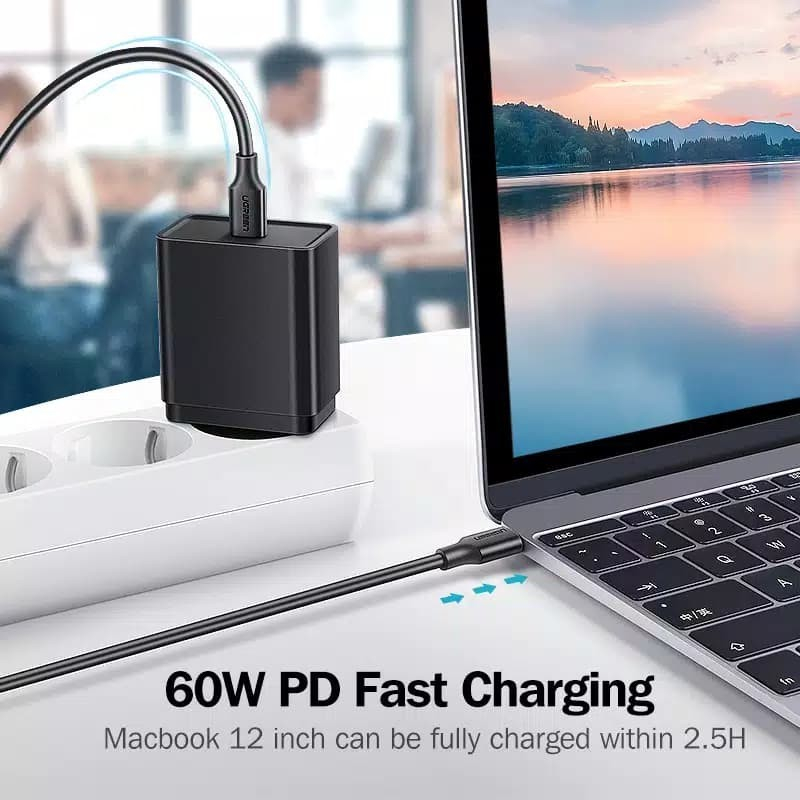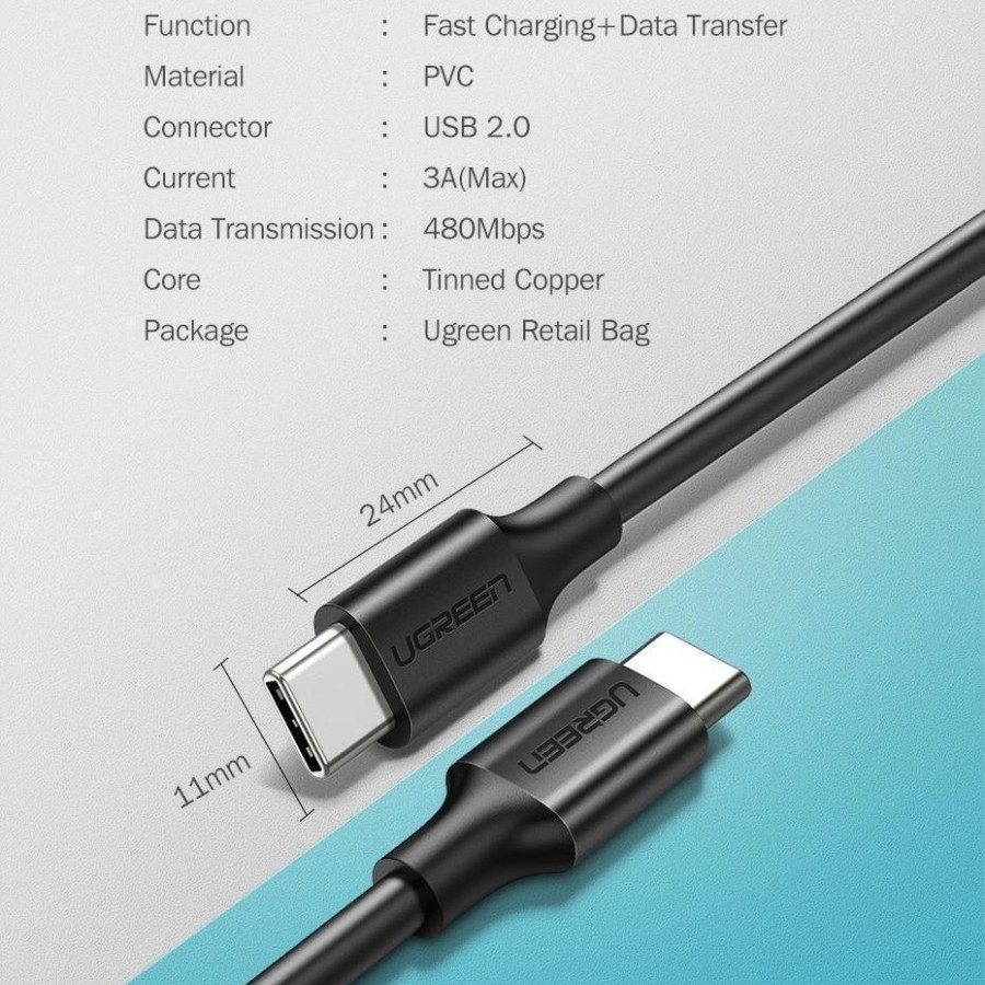 UGREEN ORIGINAL Kabel Data TPE TYPE C TO TYPE C 60W 3A 1M Super Fast Charging Quick Charge PD Power Delivery Ori 60 Watt Cable Charger Casan Tipe C