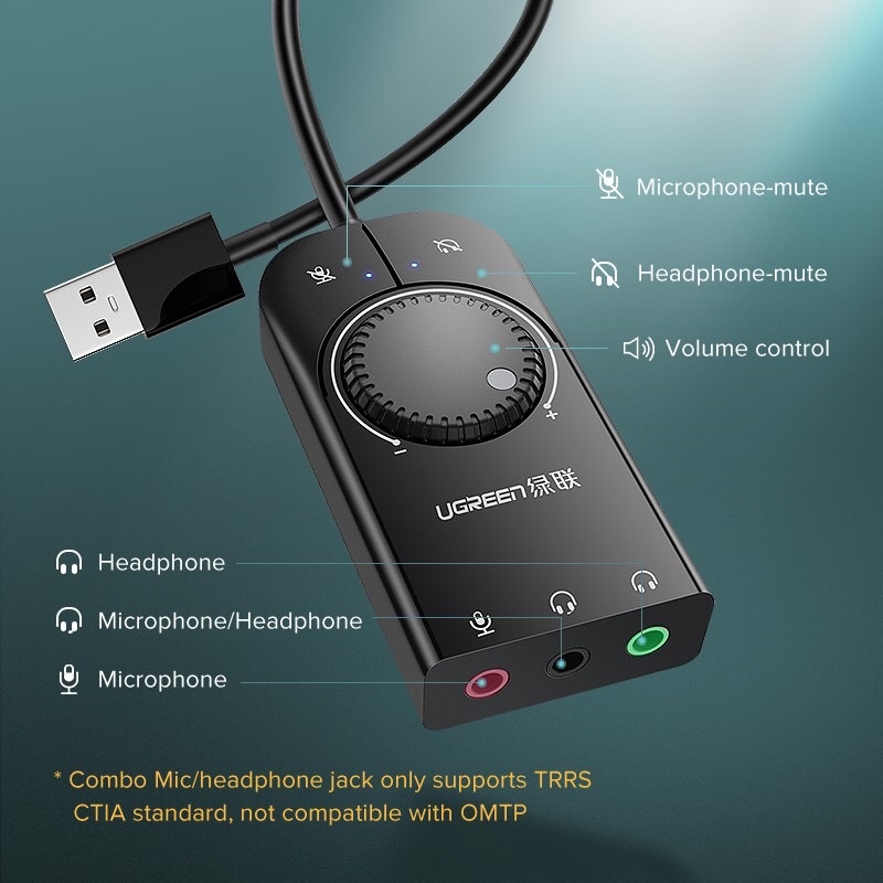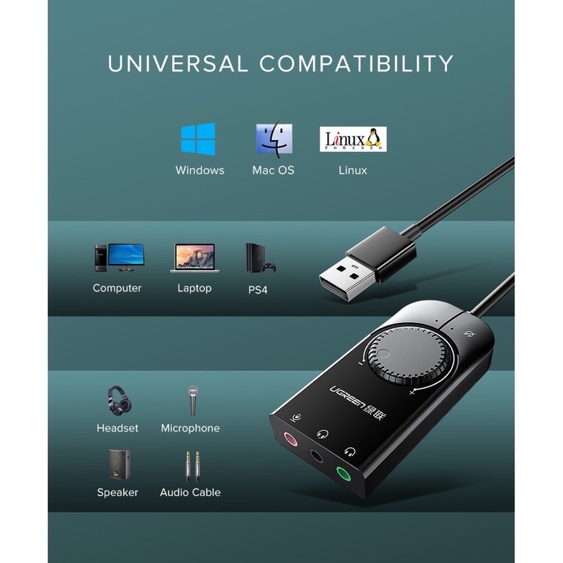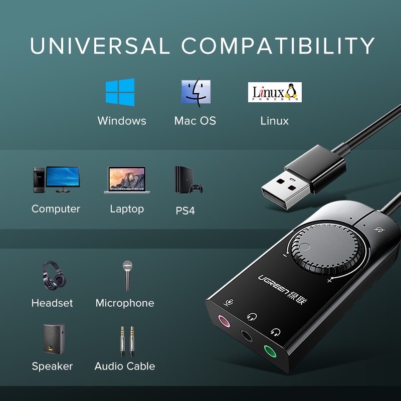 UGREEN Sound Card Eksternal Usb Audio Jack 3.5mm For Laptop PS4 1M