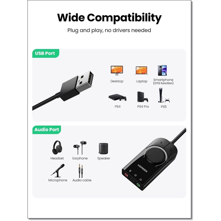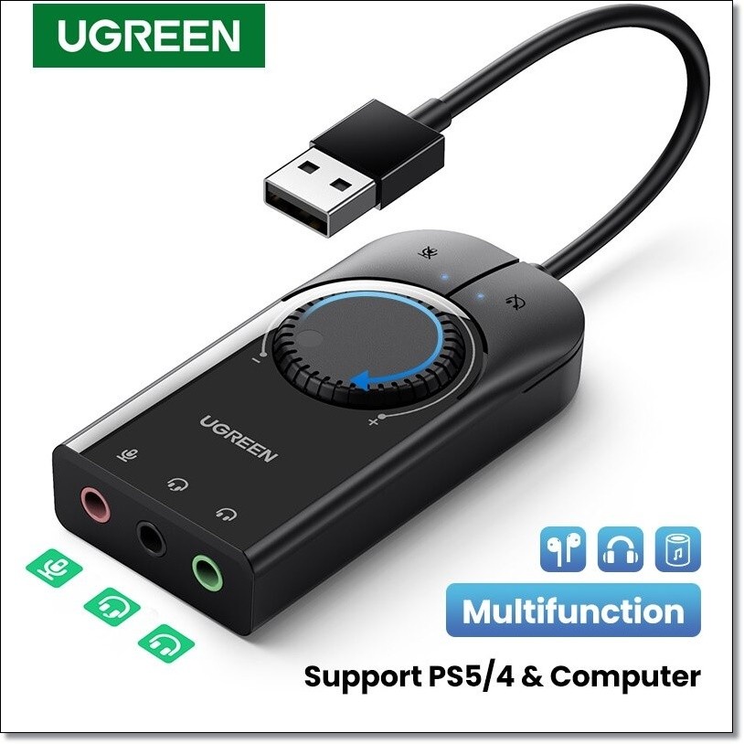 UGREEN Sound Card USB Audio Interface External 3.5mm Microphone CM129