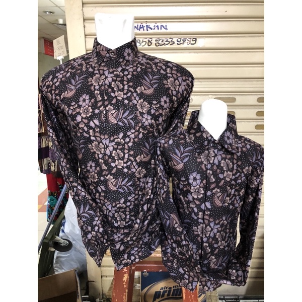 UH Baju Batik couple lapisan puring Ayah dan Anak laki-Laki, Baju batik proa pasangan ayah dan anak,WARNA LILAC,WARNA UNGU,Batik couple ayah dan anak laki-laki,GROSIR BATIK TANAH ABANG