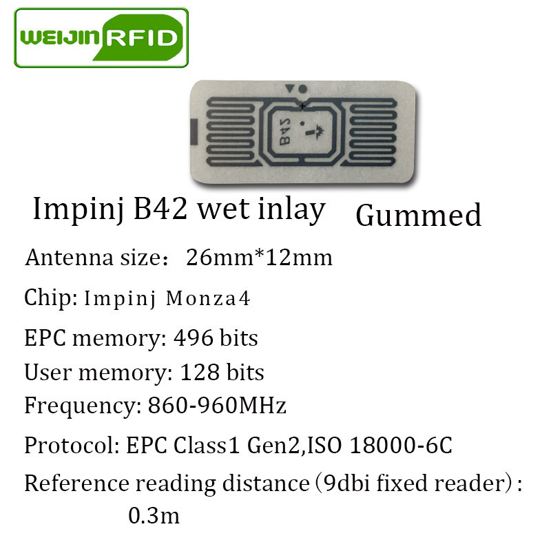 UHF RFID tag sticker Impinj B42 wet inlay 915mhz 900 868mhz 860-960MHZ EPCC1G2 6C smart adhesive passive RFID tags label