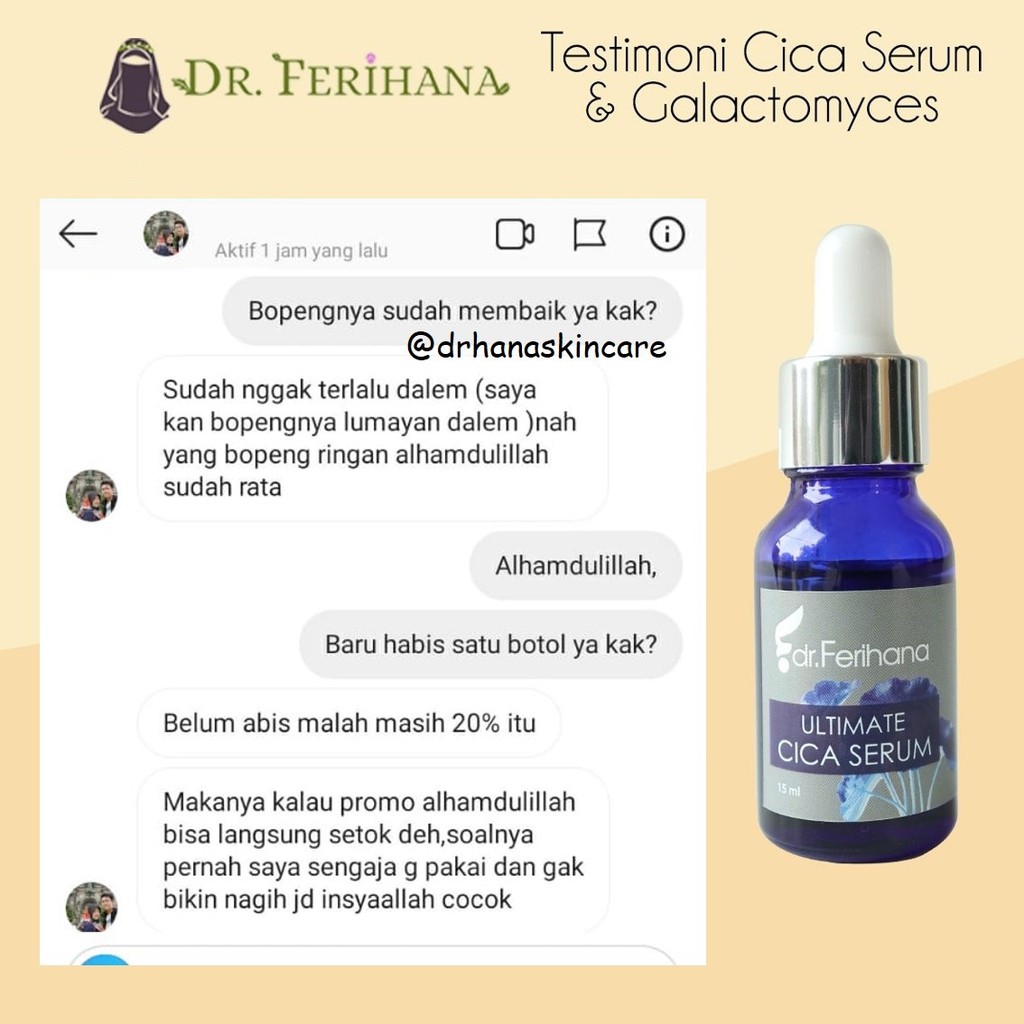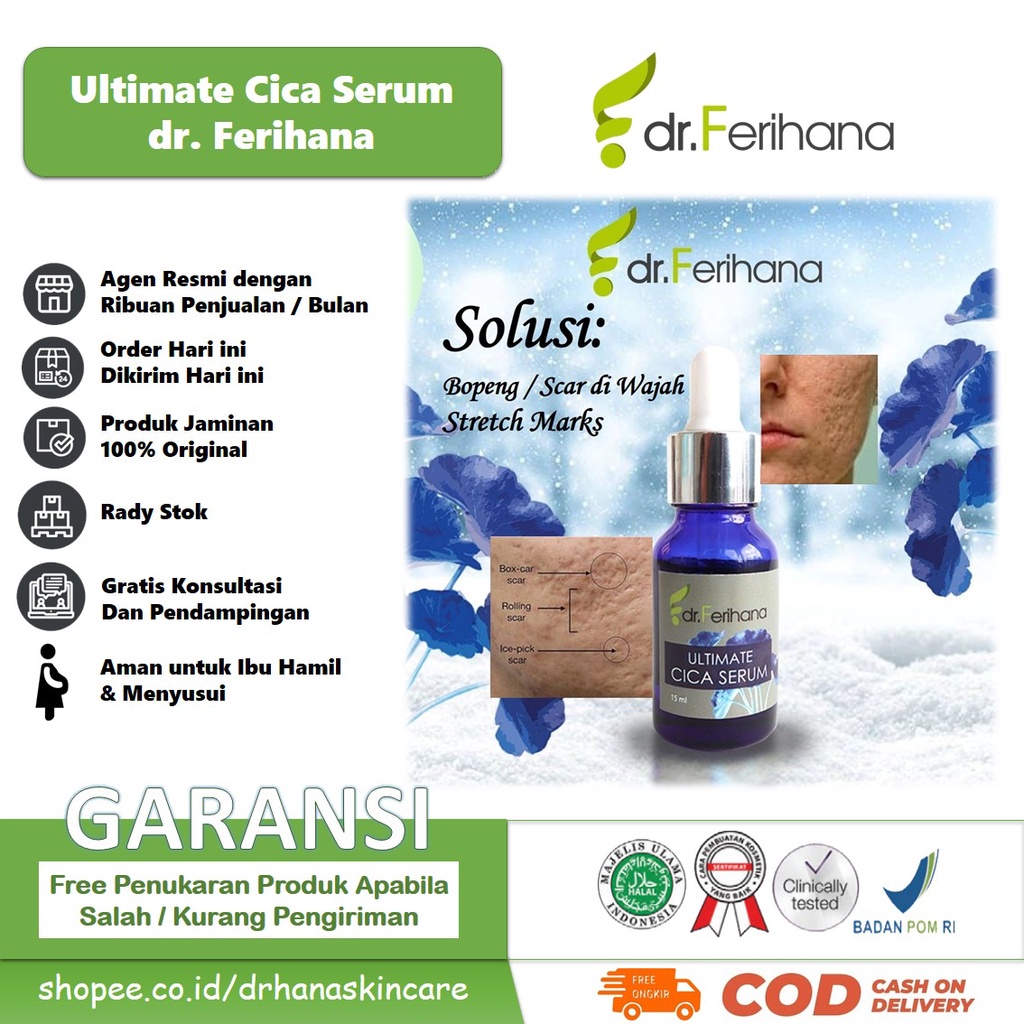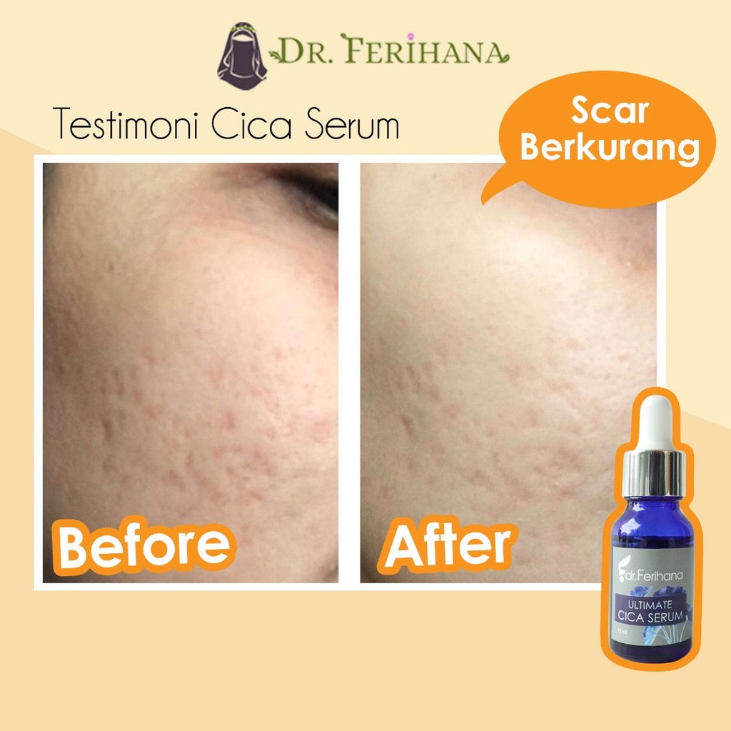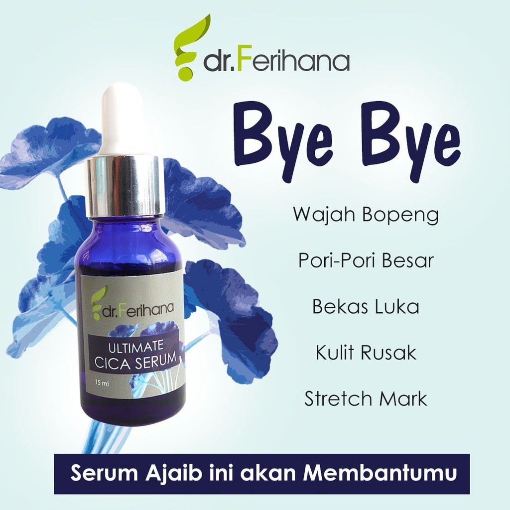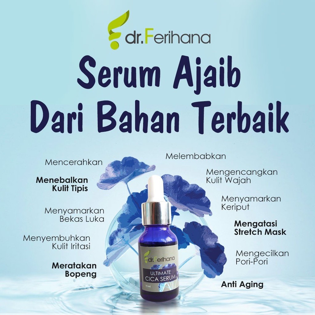 Ultimate Cica Serum dr. Ferihana Cosmetics & Skincare Merupakan Produk Perawatan Wajah untuk Mengatasi Bopeng Scar Bekas Jerawat dan Luka Stretch Marks Selulit Kulit sensitif Memperbaiki Skin Barrier Sekaligus Anti Aging BPOM LPPOM HALAL MUI