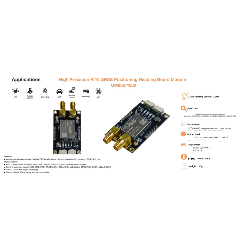 UM982 board high-precision RTK Heading GPS module GNSS full system full frequency centimeter level low-power TOPGNSS 2PMC0