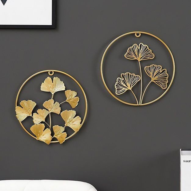 UN111 - Hiasan Dinding Bulat Motif Daun Nordic /Hiasan Dinding Frame Metal Gold