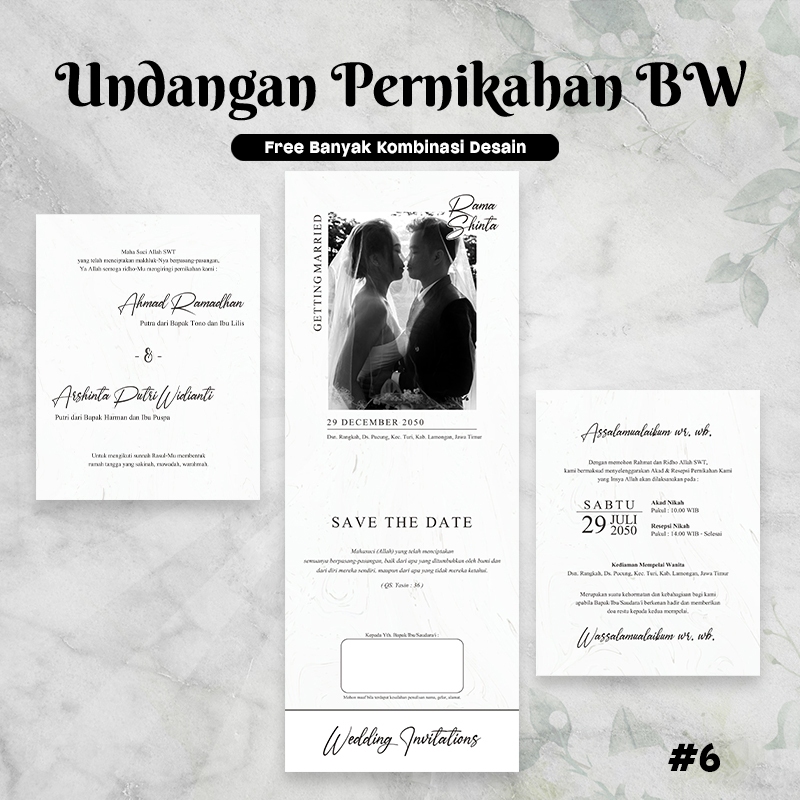 UNDANGAN FOTO BW | UNDANGAN ELEGAN HITAM PUTIH | UNDANGAN PERNIKAHAN SIMPEL BW HITAM PUTIH