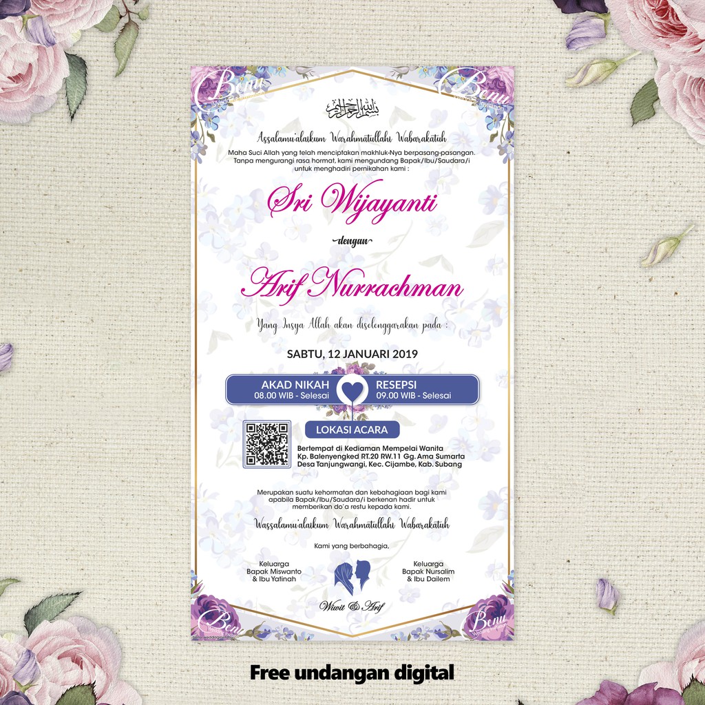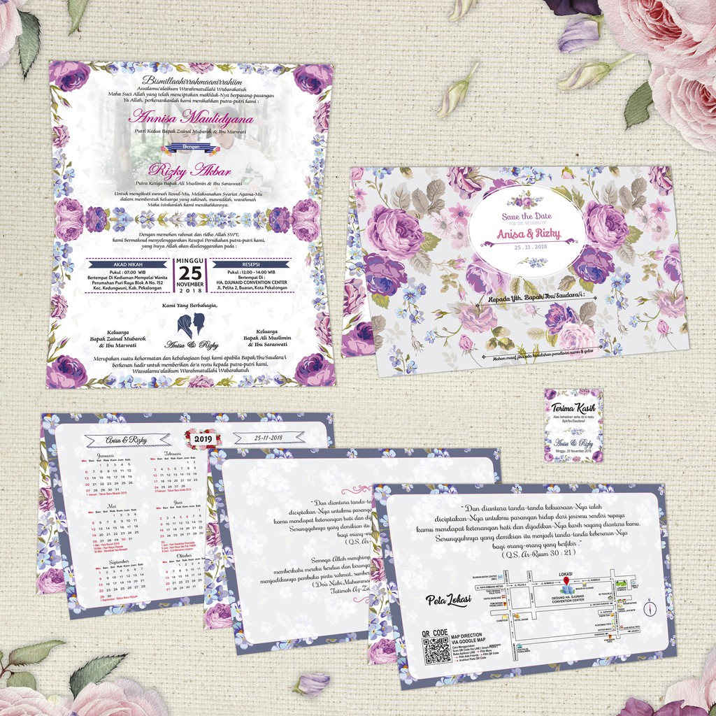 UNDANGAN PERNIKAHAN MURAH BERKUALITAS BUNGA UNGU