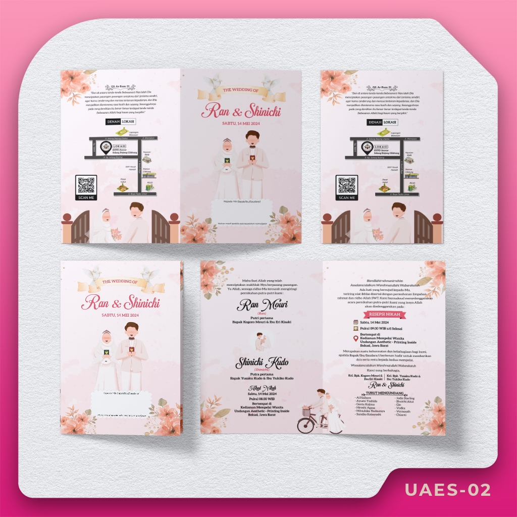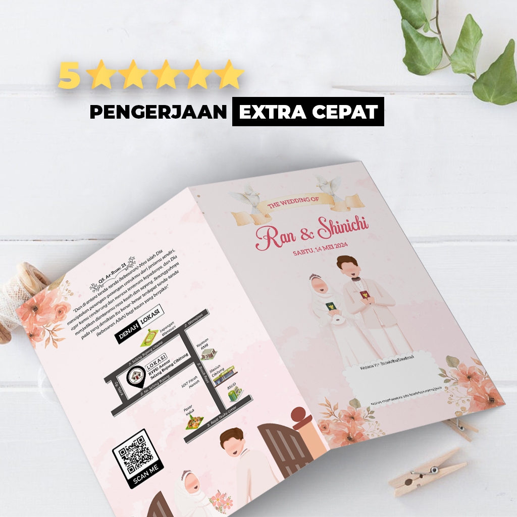 UNDANGAN PERNIKAHAN MURAH, Cetak Undangan Pernikahan Aesthetic Express Pakai Foto Free Plastik Murah Estetik BC Pink Vintage Full Color Lipat Dua | UNDANGAN AESTHETIC